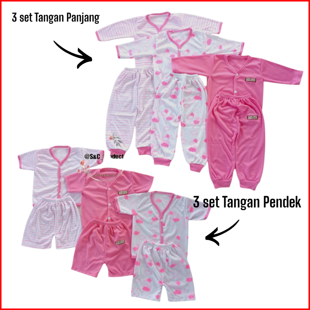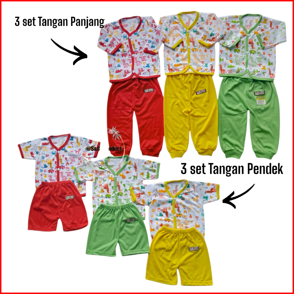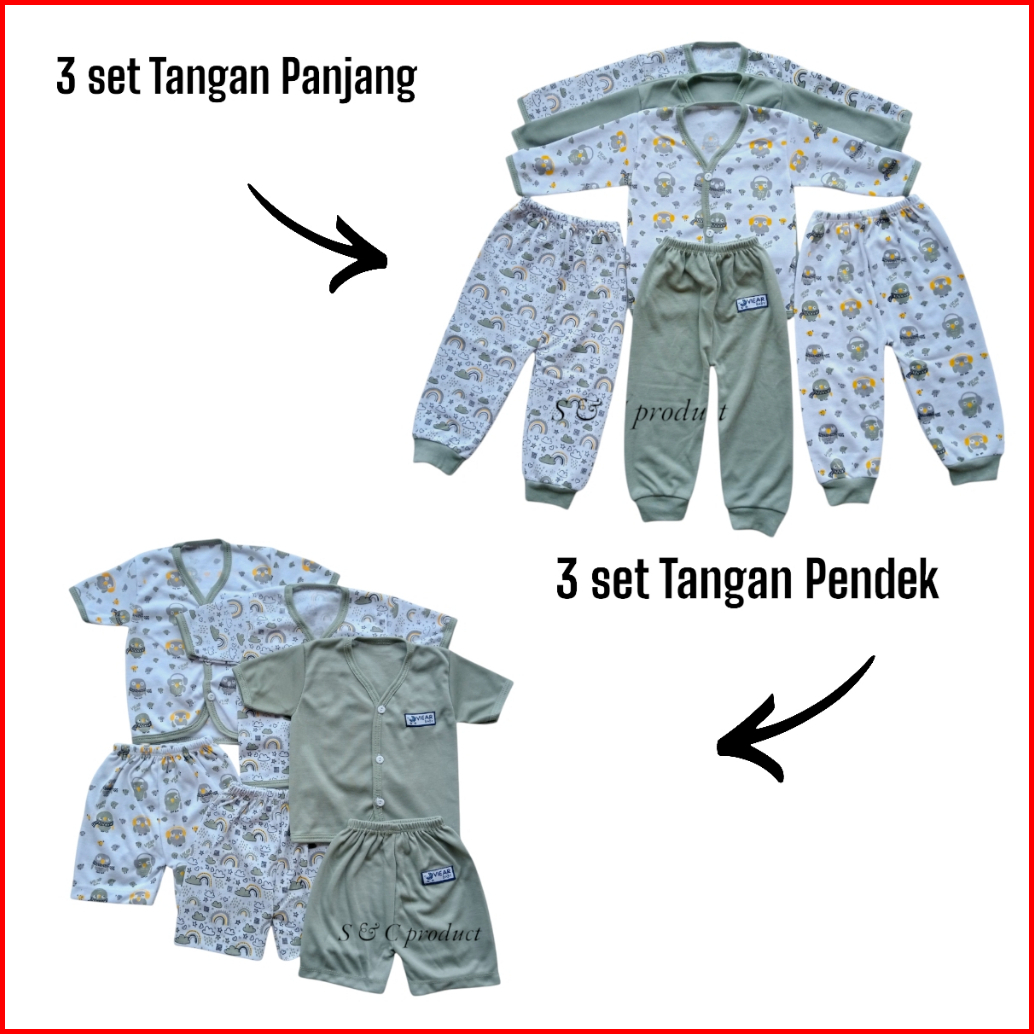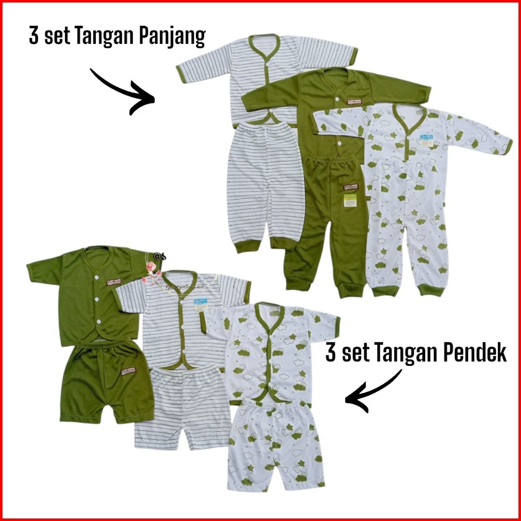 New Promo 3 Set Setelan Baju Bayi Newborn 0-3 Bulan Motif Lengan Pendek Lengan Panjang