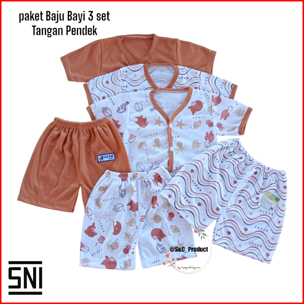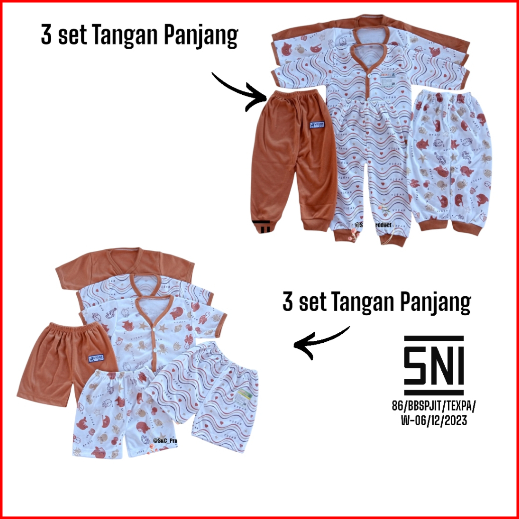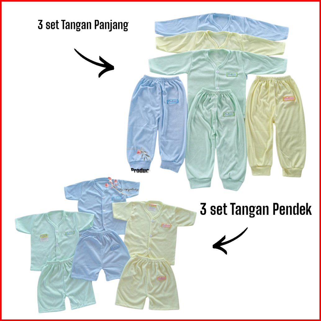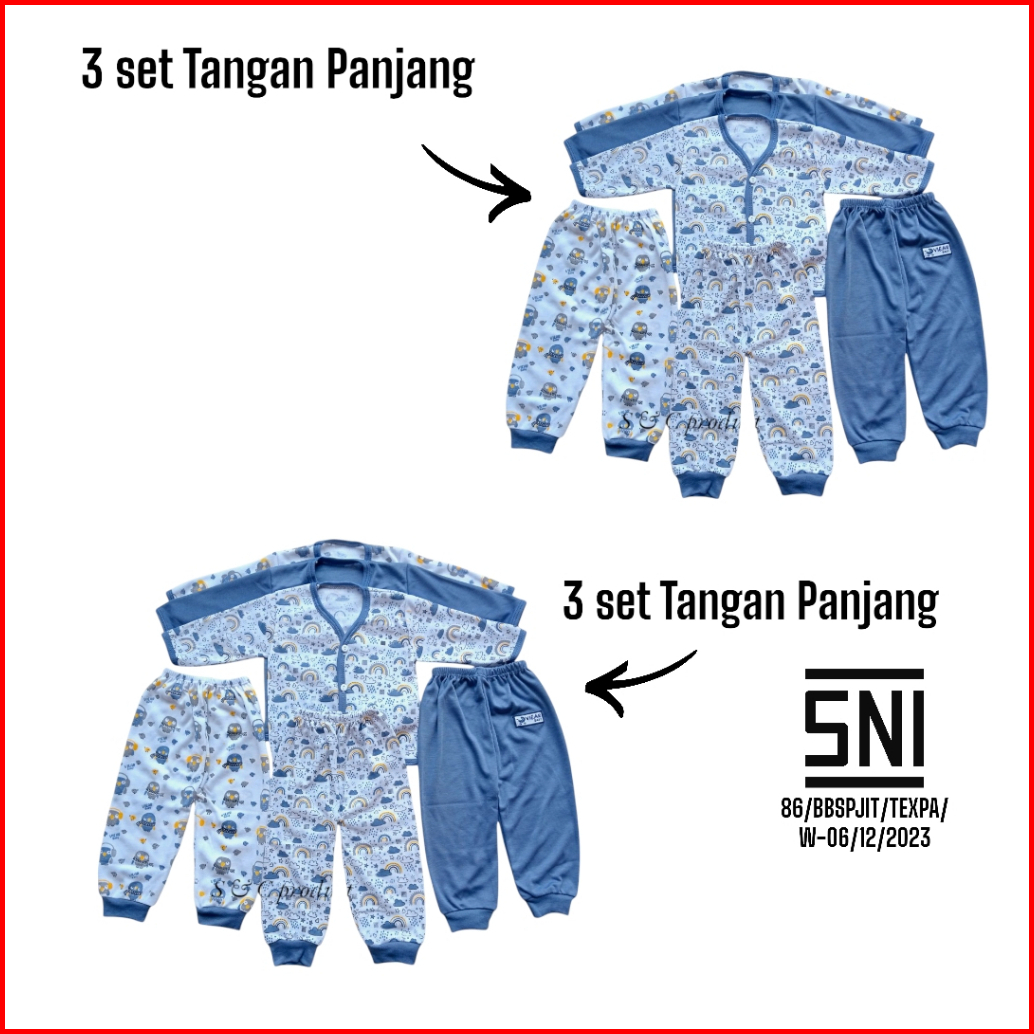 New Promo 3 Set Setelan Baju Bayi Newborn 0-3 Bulan Motif Lengan Pendek Lengan Panjang