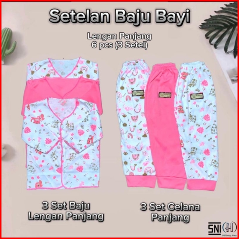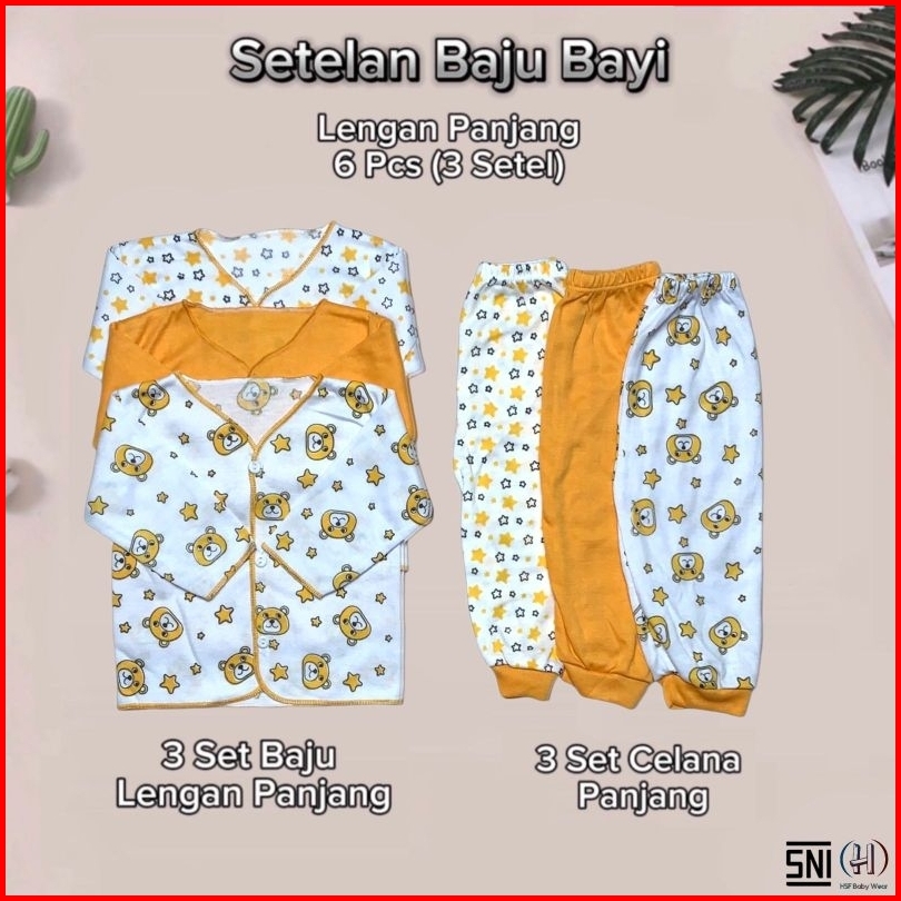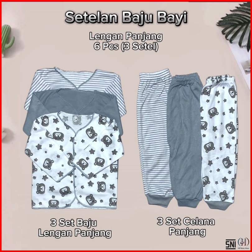 Paket 6 Pcs Baju Bayi New Born 0-3 Bulan Lengan Panjang