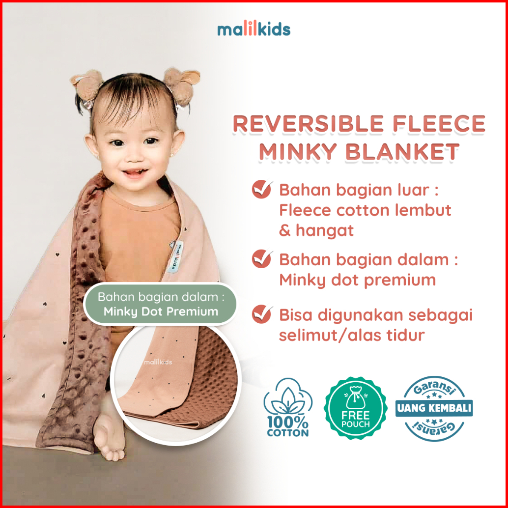 Malilkids Selimut Bayi Reversible Fleece Minky Blanket