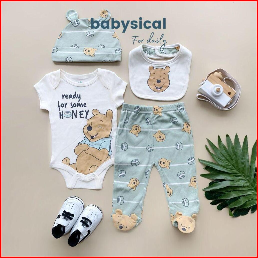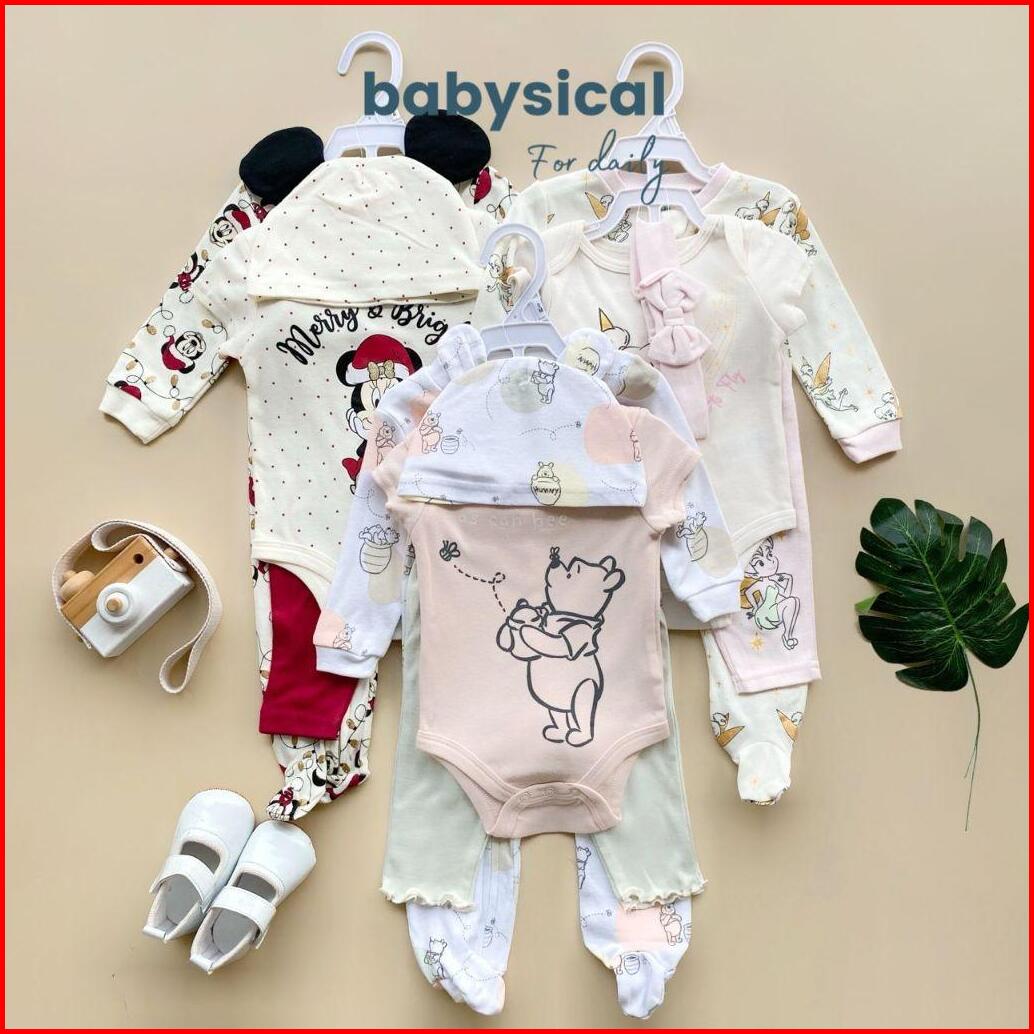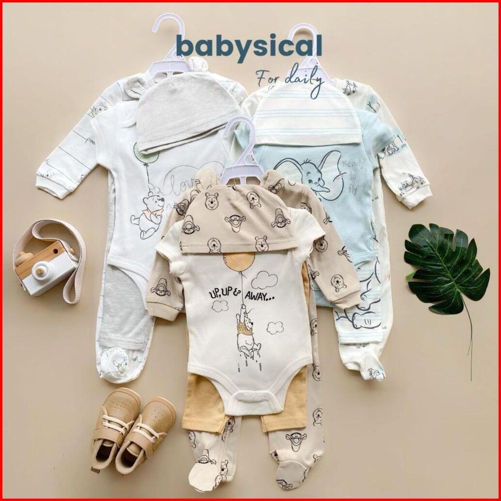 Babysical 0-9 Bulan Set 4in1 Dsny Series Baju Bayi Premium Set 4in1 Jumper Beannie Kupluk Celana Panjang Baju Bayi Balit