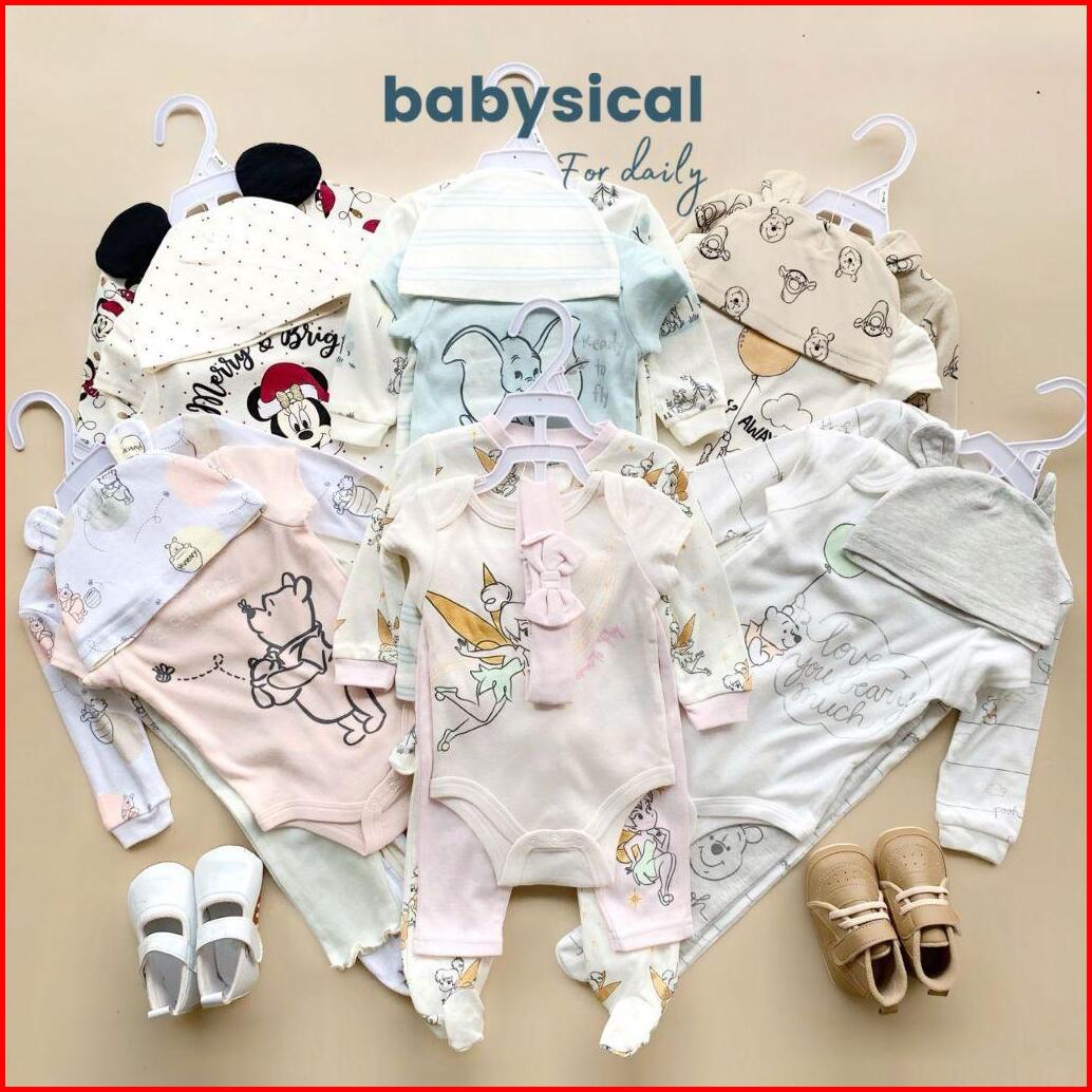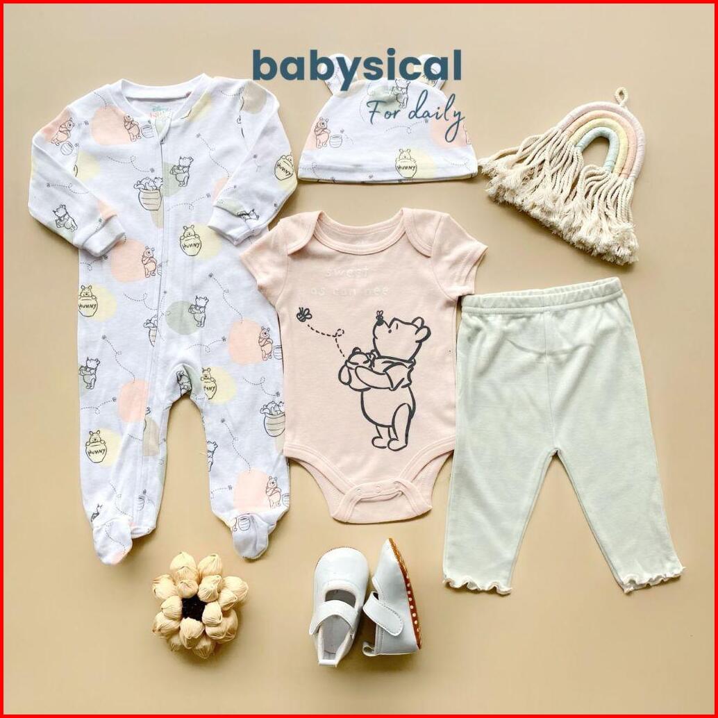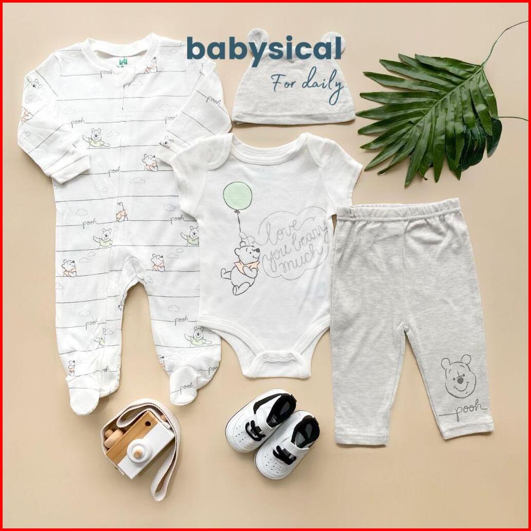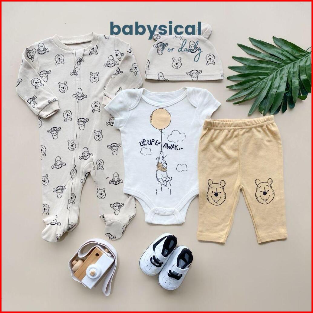 Babysical 0-9 Bulan Set 4in1 Dsny Series Baju Bayi Premium Set 4in1 Jumper Beannie Kupluk Celana Panjang Baju Bayi Balit