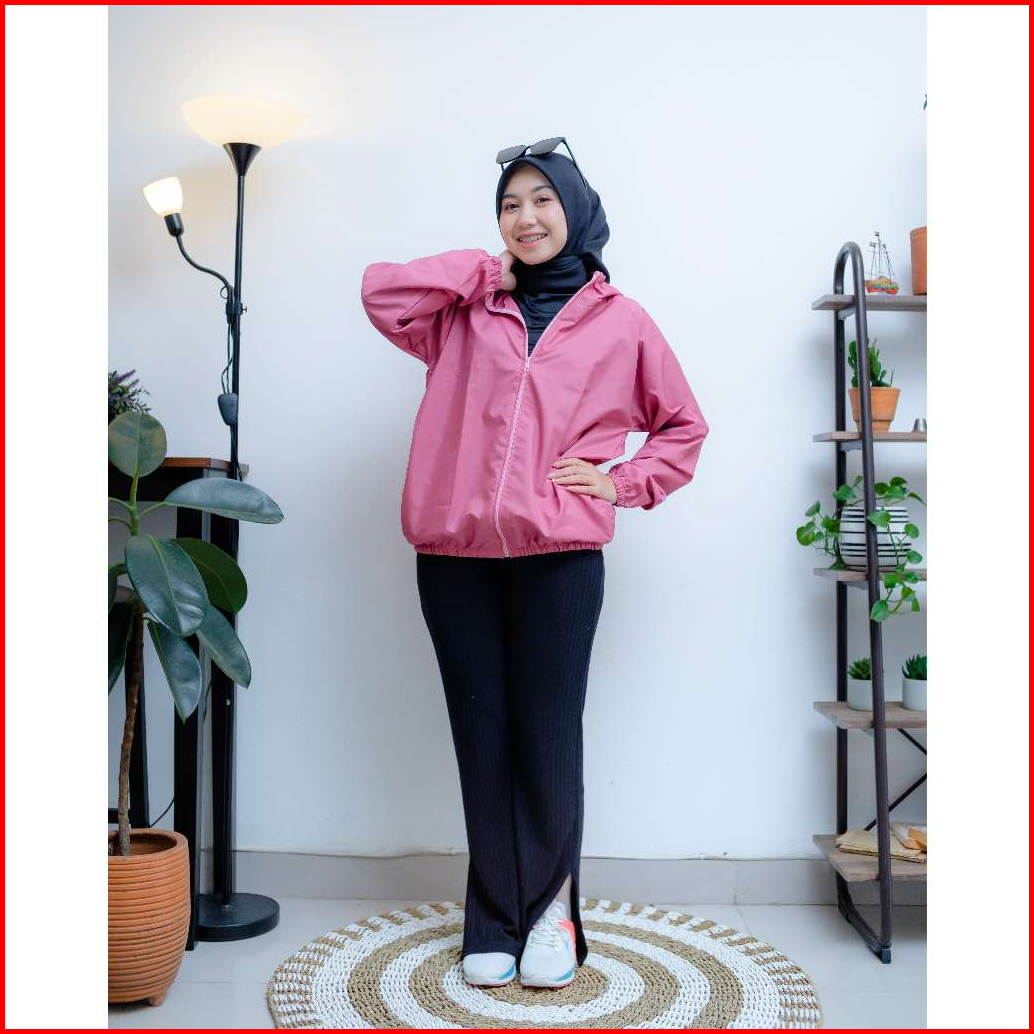Hesclothes - Jaket Olahraga Parasut Polos Wanita Sauna Suit Gym Jogging Fitnes Lari Bersepeda Despo