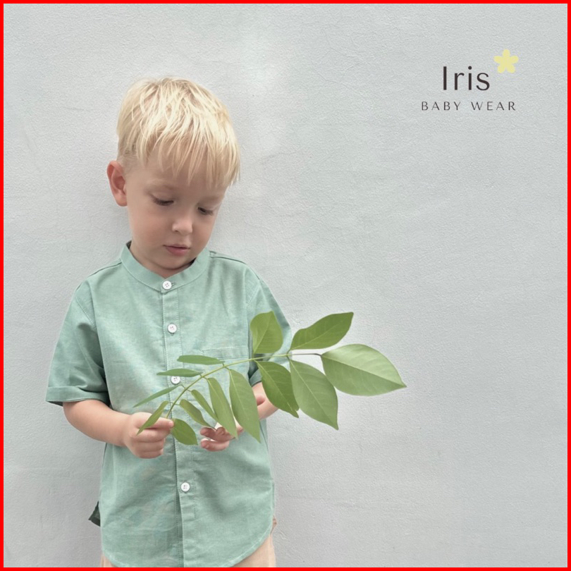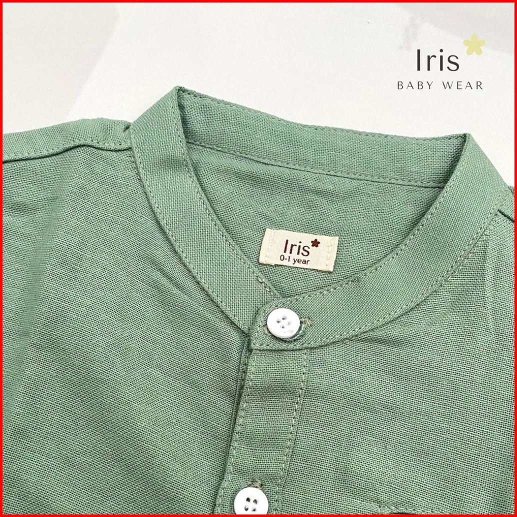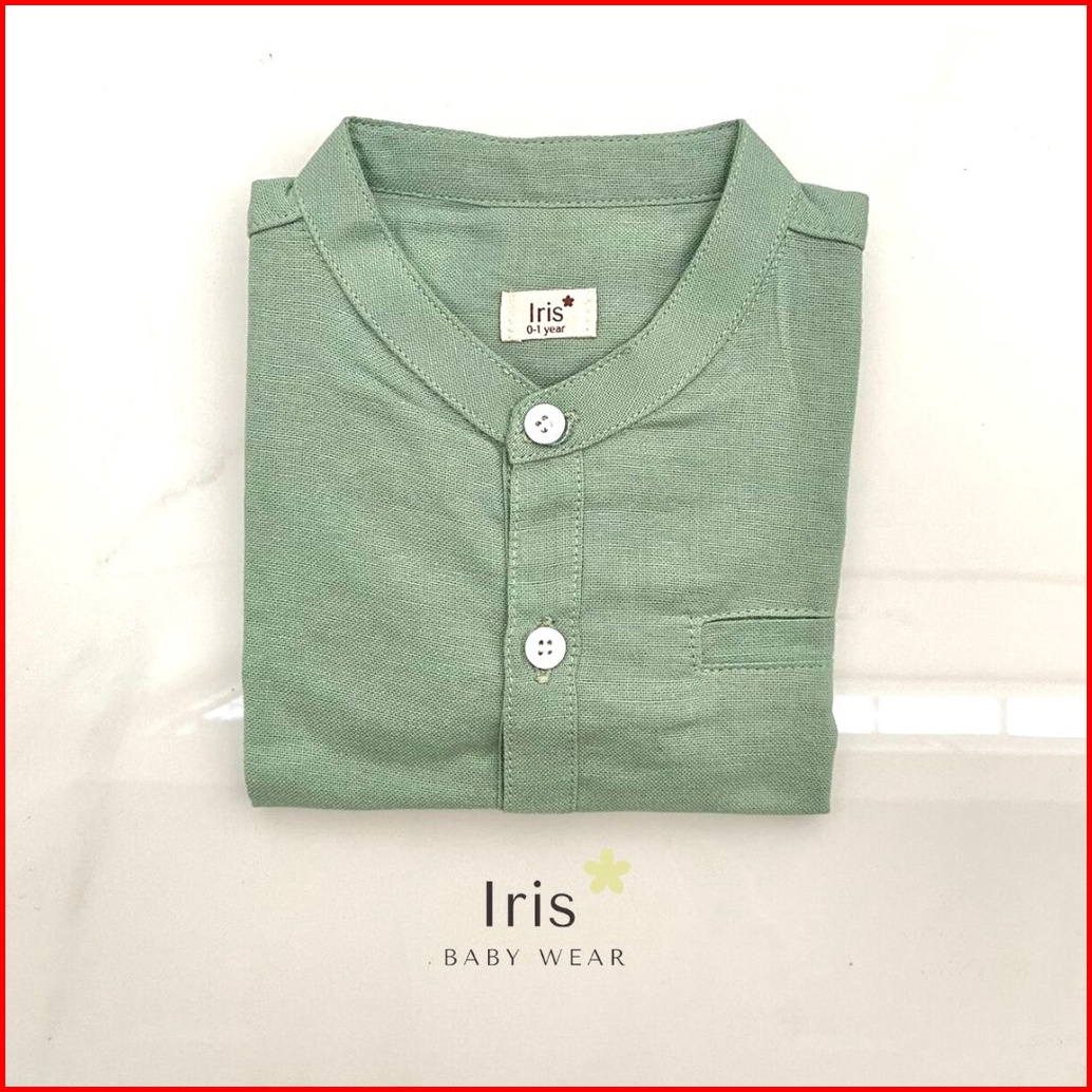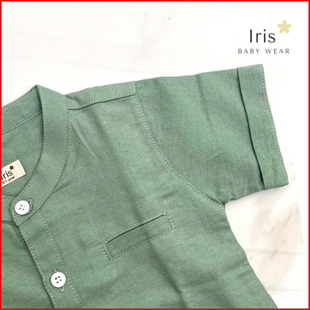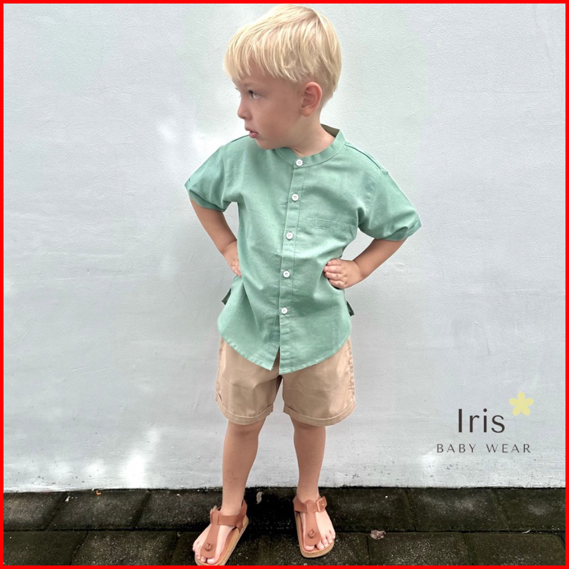 Iris Baby Wear - Atasan Kemeja Bayi Koko Anak Laki Laki Polos Linen Lengan Pendek Bayi Kemko Anak Sage