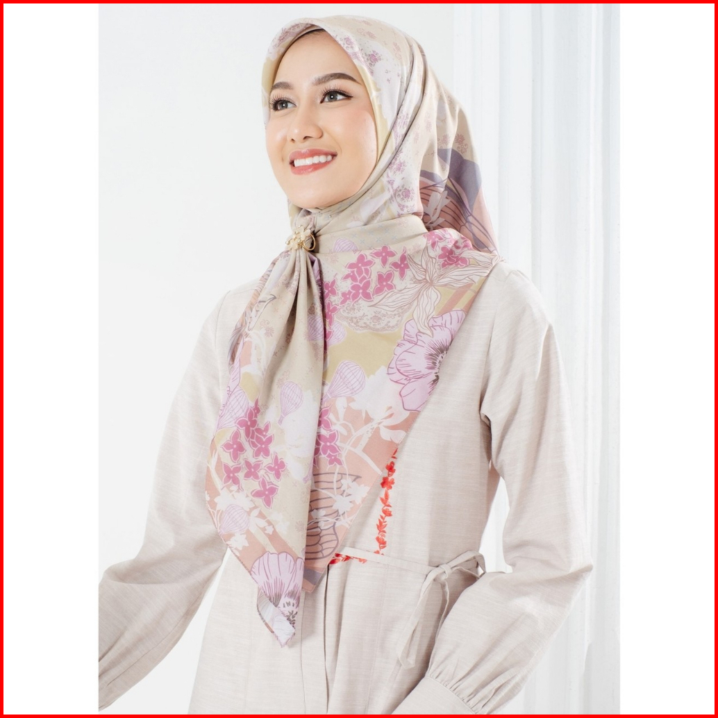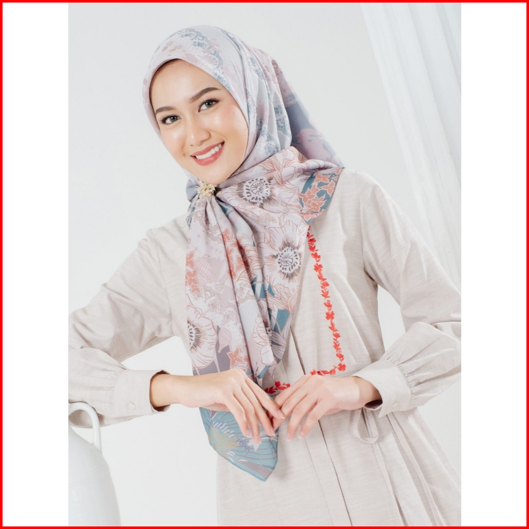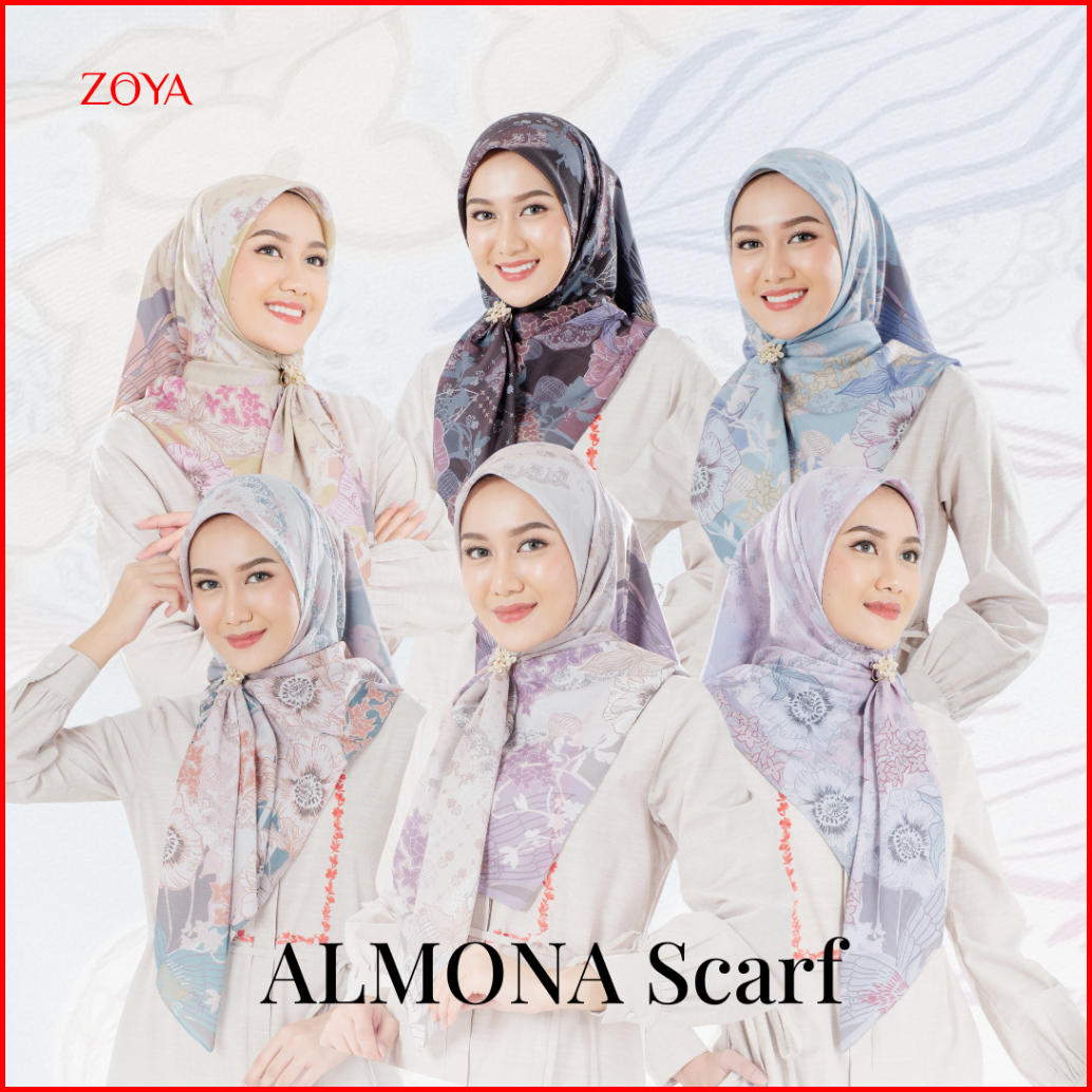 Zoya Almona Scarf - Kerudung Hijab Segiempat Motif With Pouch - Bahan Poly Fine - Ukuran 110x110