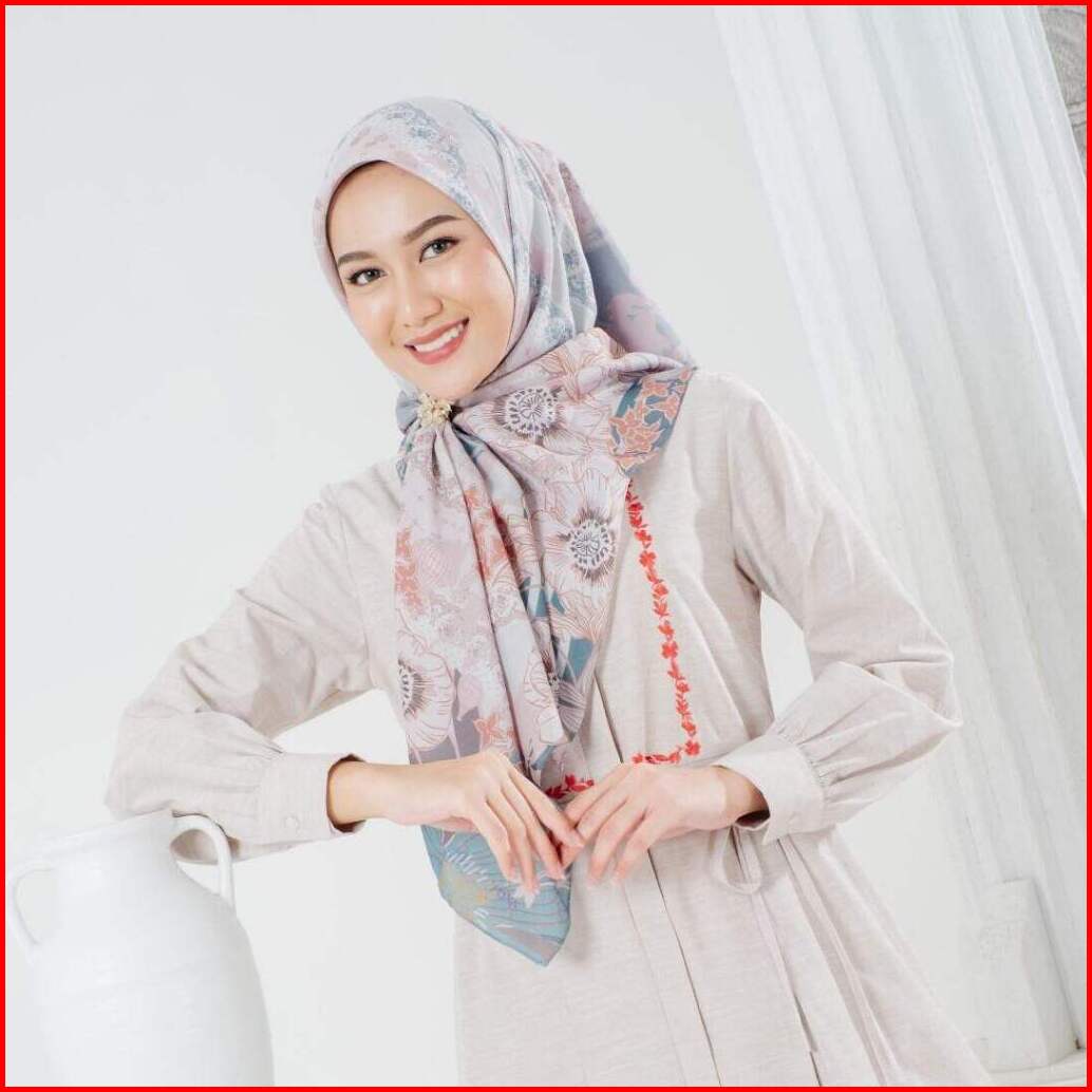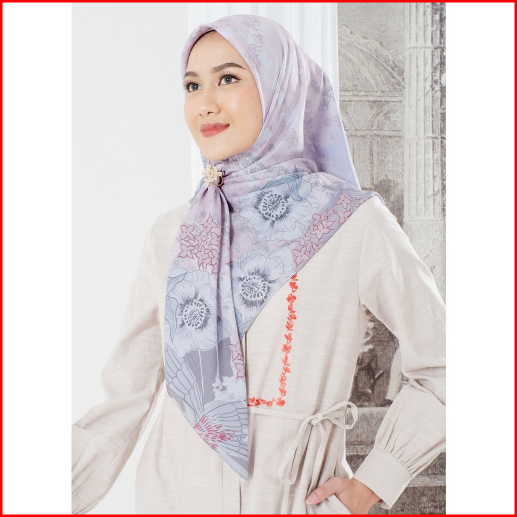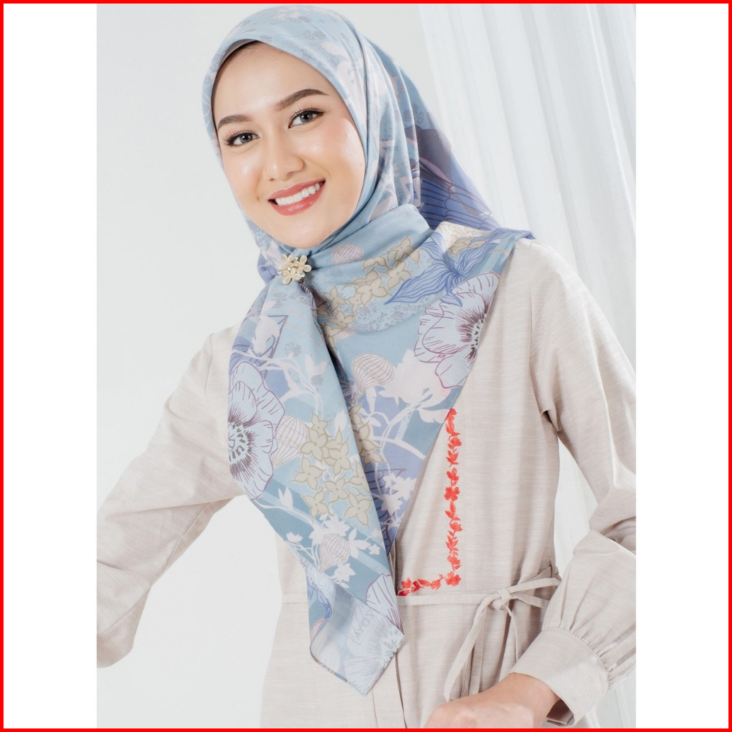 Zoya Almona Scarf - Kerudung Hijab Segiempat Motif With Pouch - Bahan Poly Fine - Ukuran 110x110
