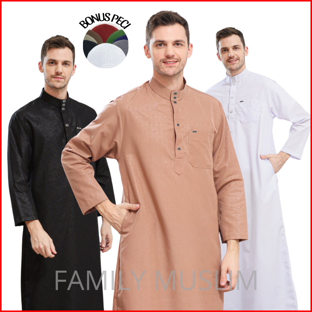 Family Muslim - Jubah Gamis Pria Dewasa Lengan Panjang Slimfit At Tarim Navy