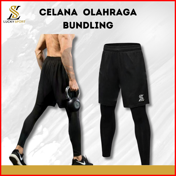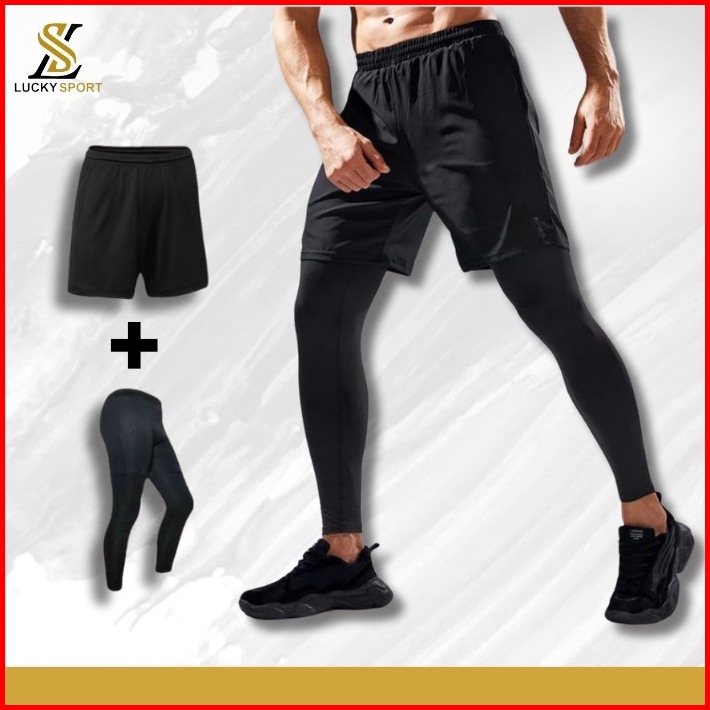 Stelan Bawahan Olahraga Pria Celana Pendek Dan Legging Panjang Stelan Olahraga Pria Legging Dan Celana Futsal Gym Fitnes