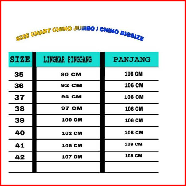 Celana Chino Pria Big Size Celana Pria Ukuran Jumbo 36 37 38 39 40 41 42 44