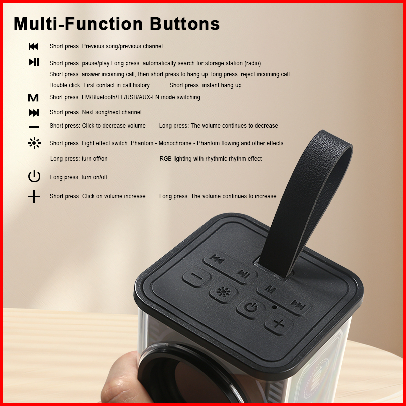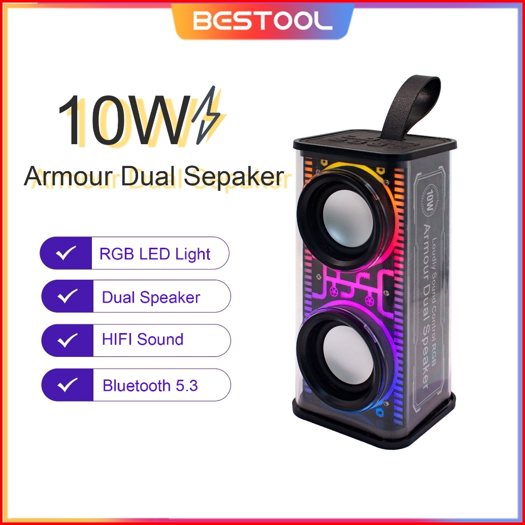 Bestool Speaker Bluetooth 10w Speaker Ganda Lampu Led Rgb Transparan Kualitas Tinggi Luar Ruangan Tahan Air Bass Pesta D