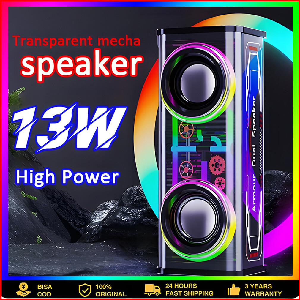 Cyberpunk Speaker Bluetooth V1 V8 Double Subwoofer Music Speaker Rgb Led Light Transparent Mecha Speaker V1 Speaker Blue