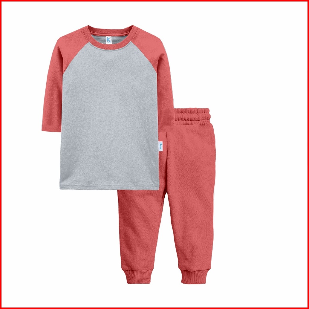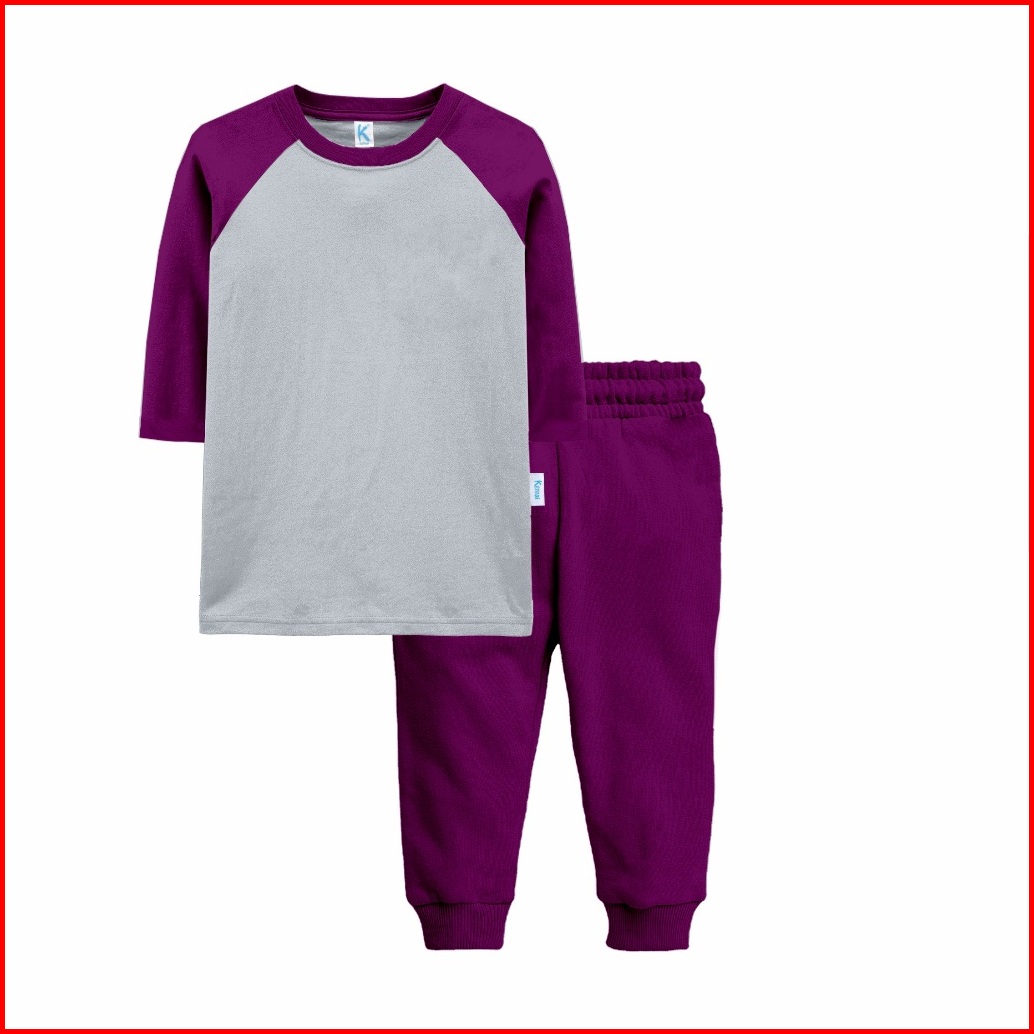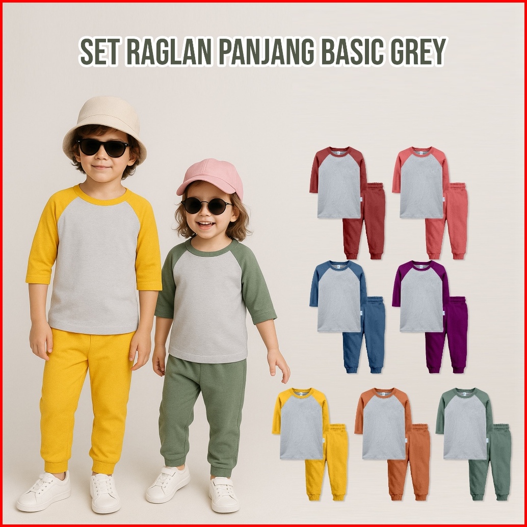 Kennai Kaos Setelan Lengan Panjang Raglan Anak Baju Anak Laki Laki Perempuan Basic Y.grey Polos