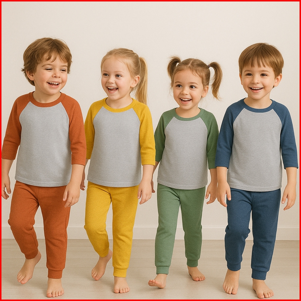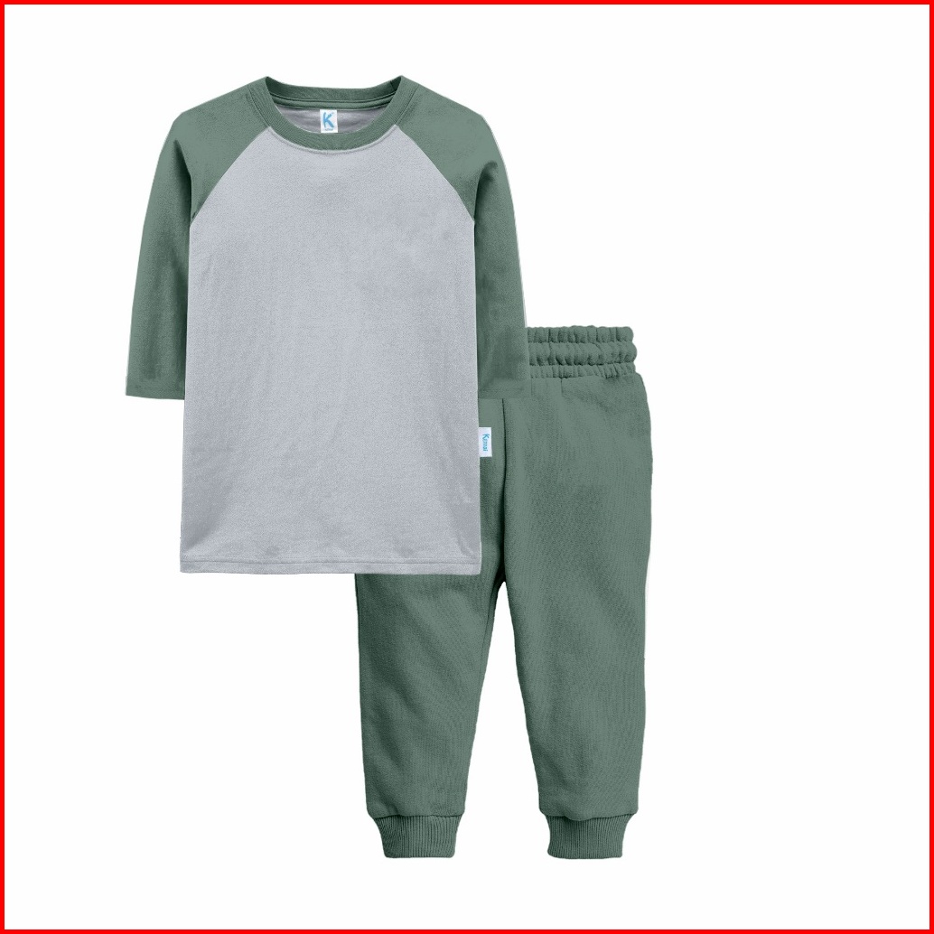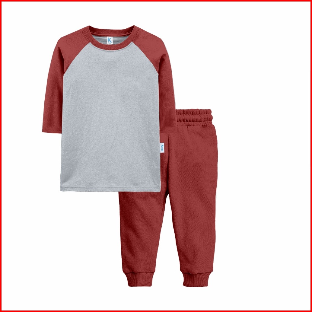 Kennai Kaos Setelan Lengan Panjang Raglan Anak Baju Anak Laki Laki Perempuan Basic Y.grey Polos
