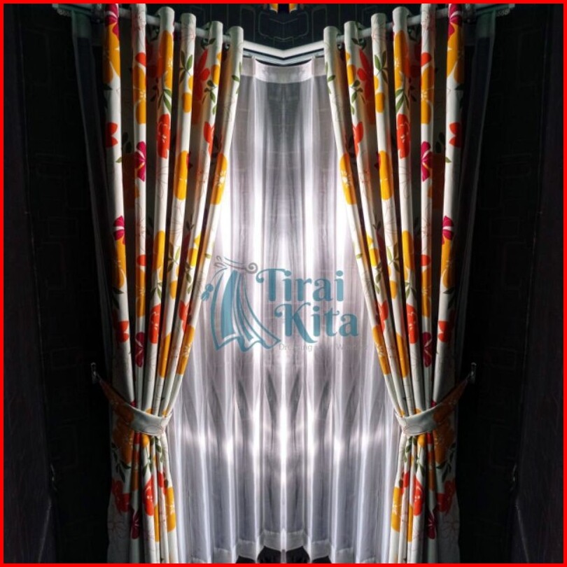 Gorden Motif Bunga Ukuran 100x300 Tinggi 3 Meter