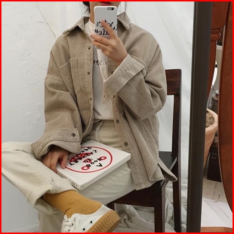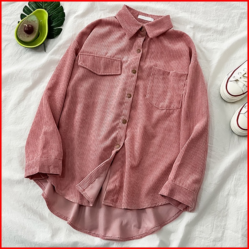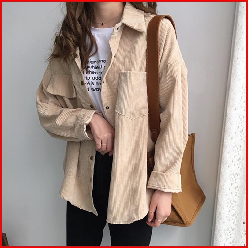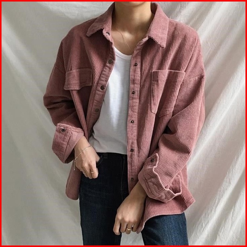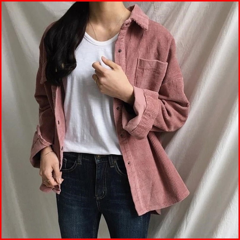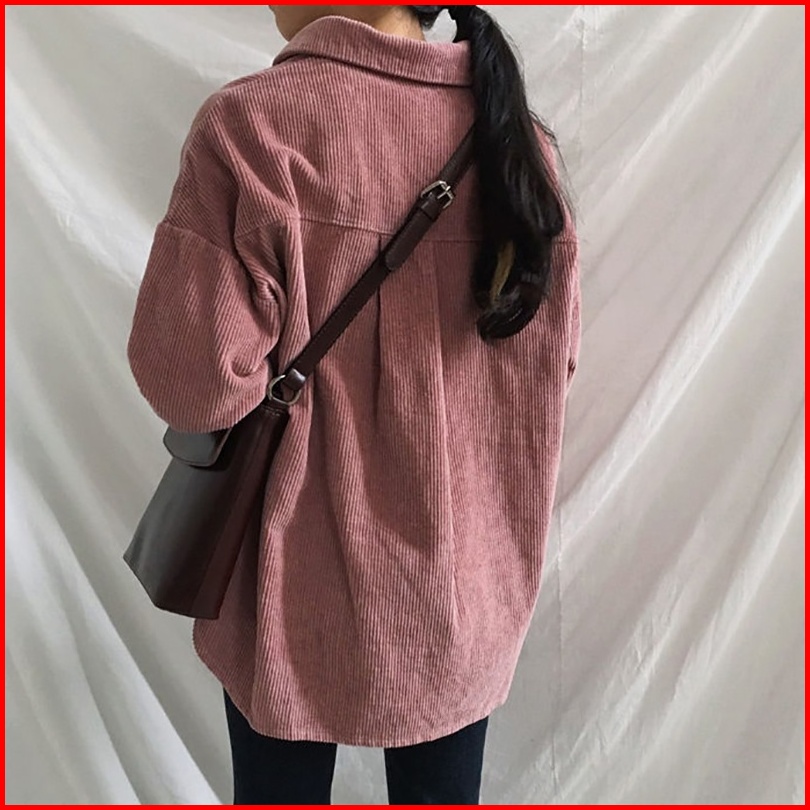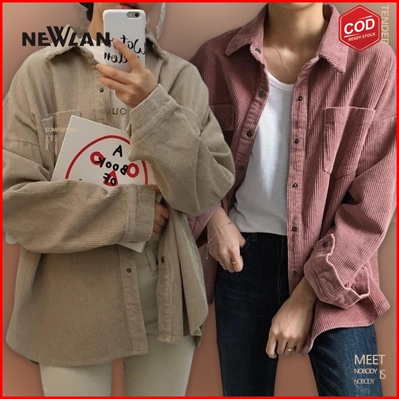 Newlan Cs006 Kemeja Corduroy Wanita Retro Gaya Korea Kemeja Oversize Lengan Panjang