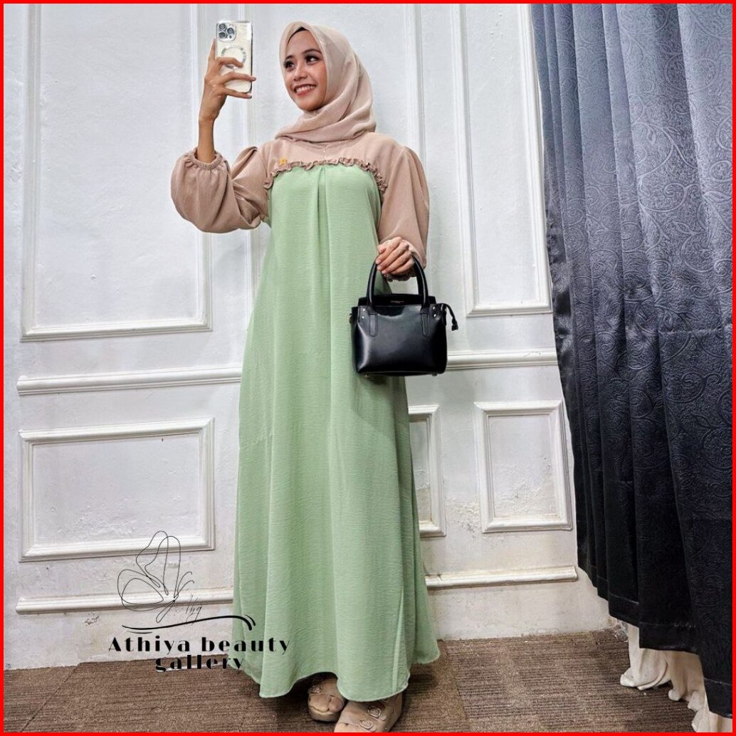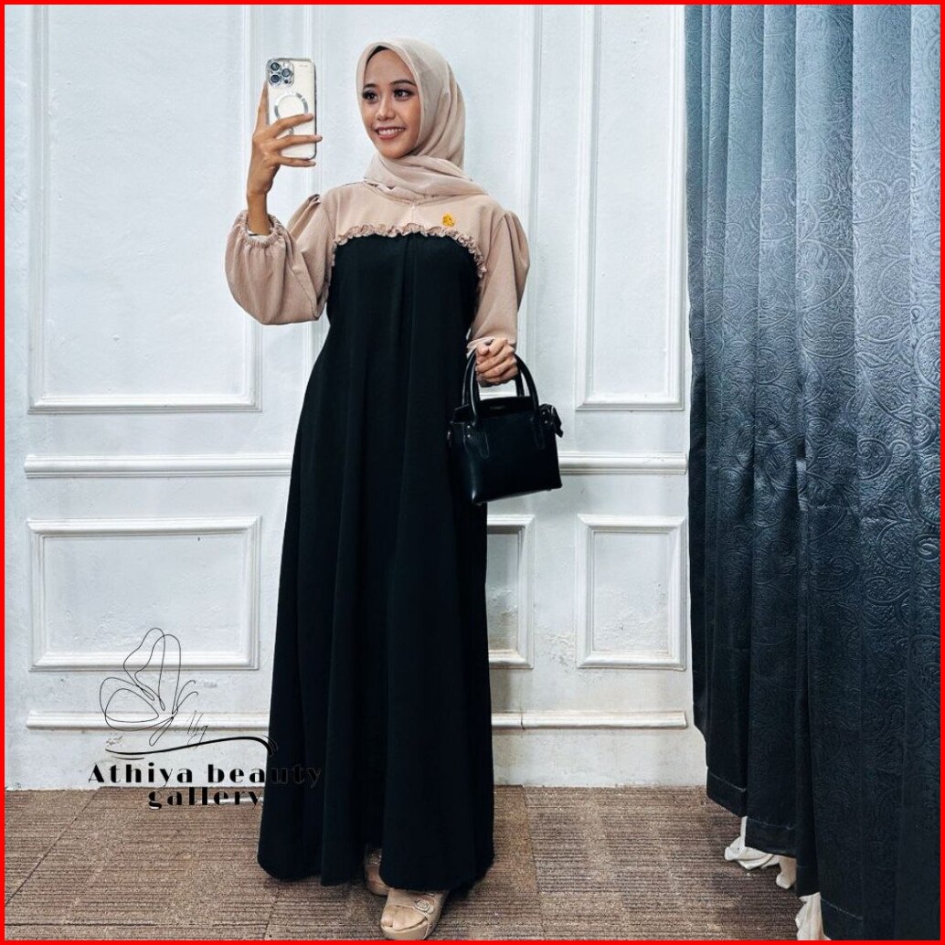 Dastan - Malaya Dress Crinkle Airflow Resleting Depan Tali Samping Remple Dada Panjang Cantik Hitam Gamis Terbaru Termua