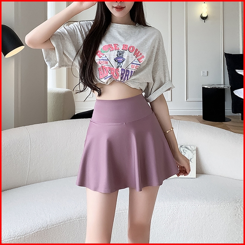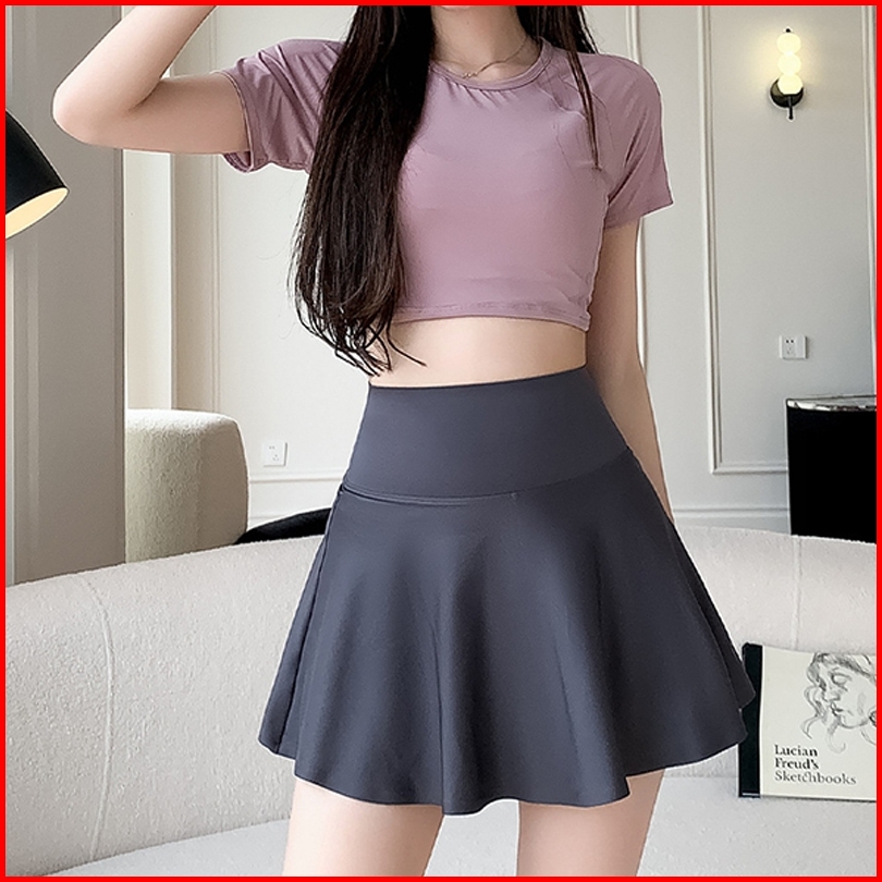 Aklover Rok Olahraga Wanita Rok Skirt Pendek Olahraga Pinggang Tinggi 2 In 1 Rok Tenis Golf