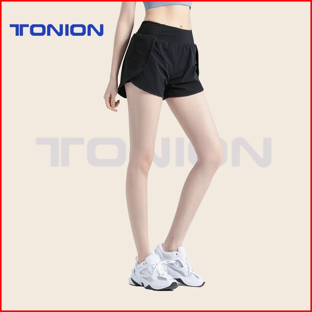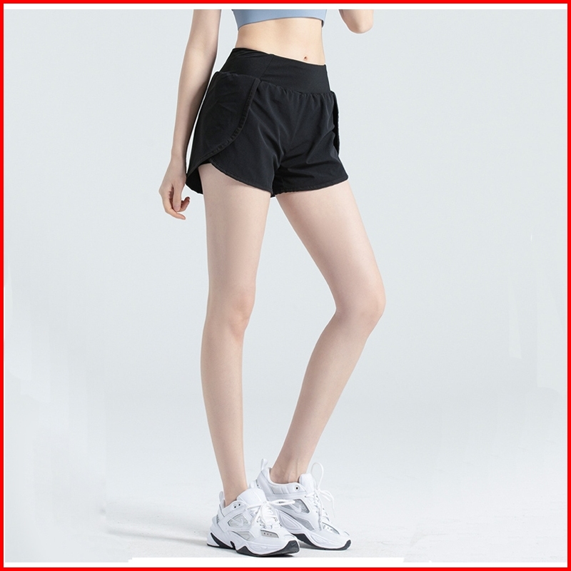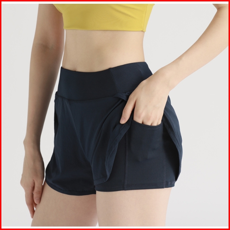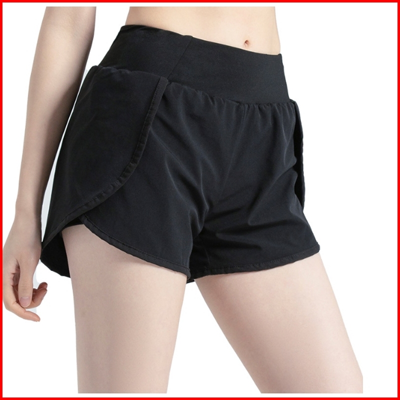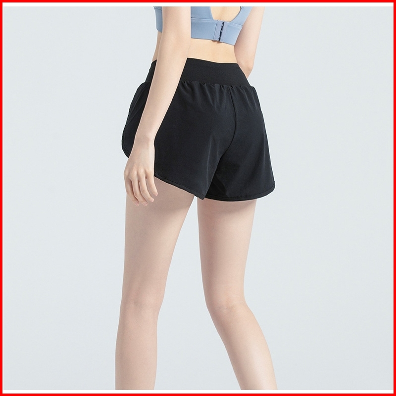 Pendek Celana 2 In 1 Olahraga Legging Wanita Pakaian High Waist Polos Bersepeda Yoga Running Sport Fitness