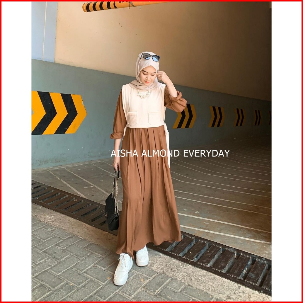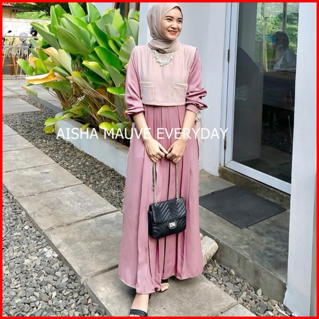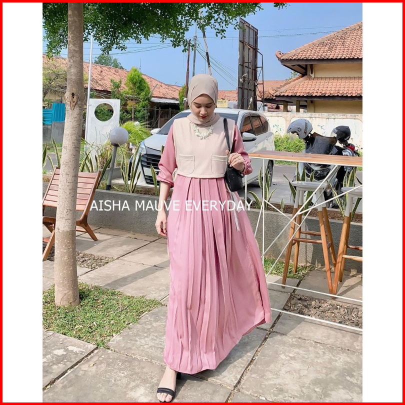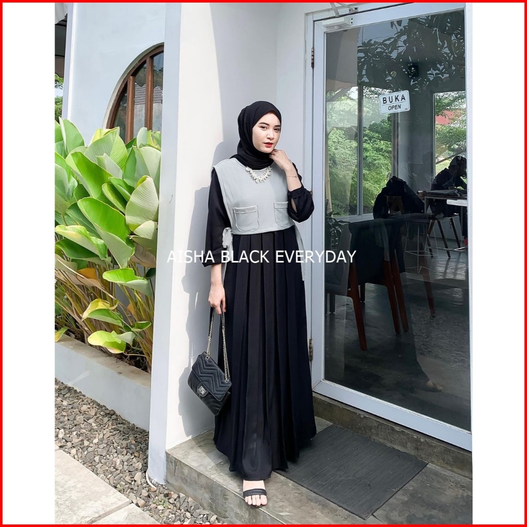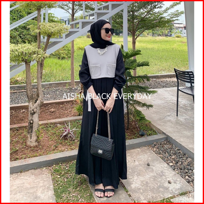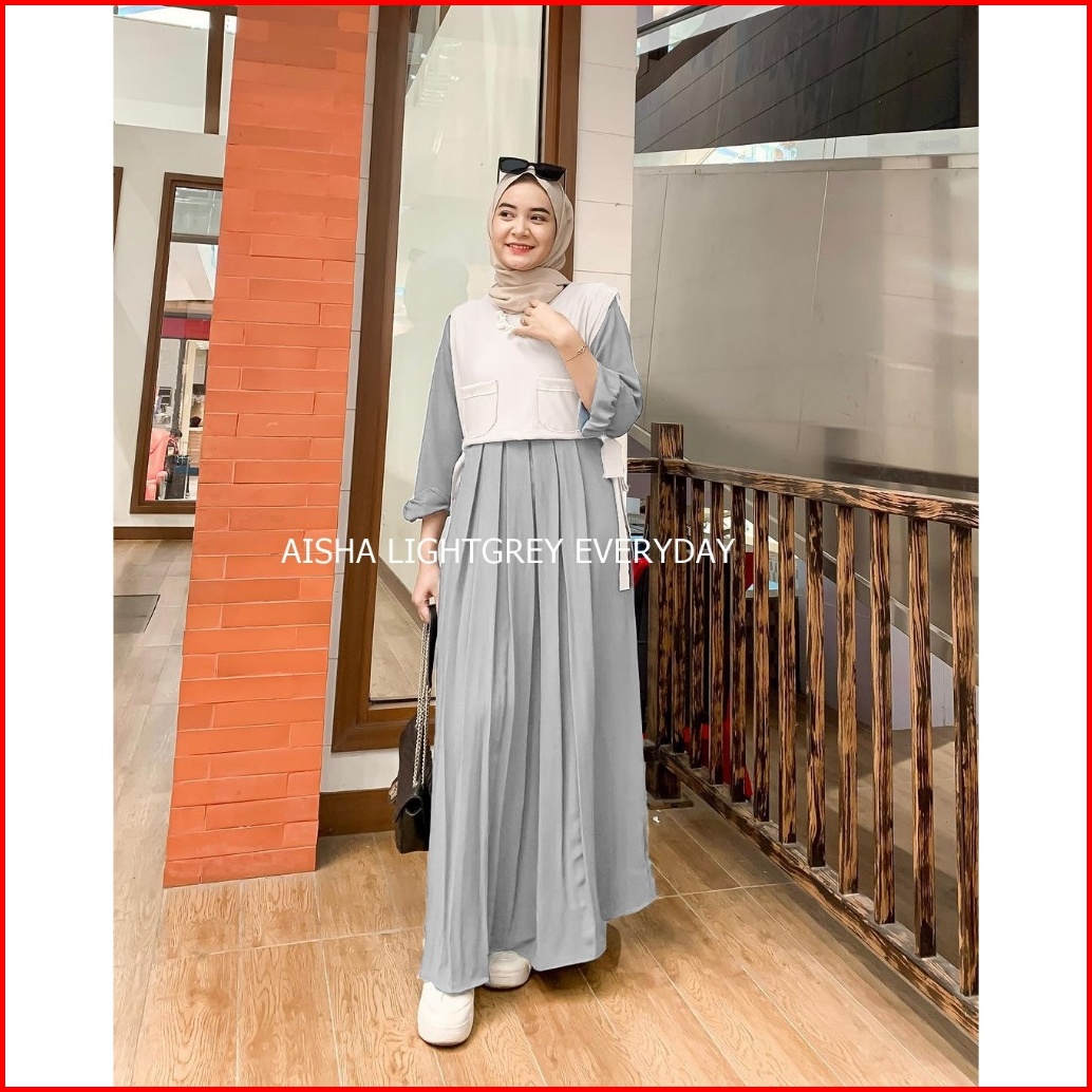Aisha Dress Wanita Gamis Muslim Remaja Korean Style