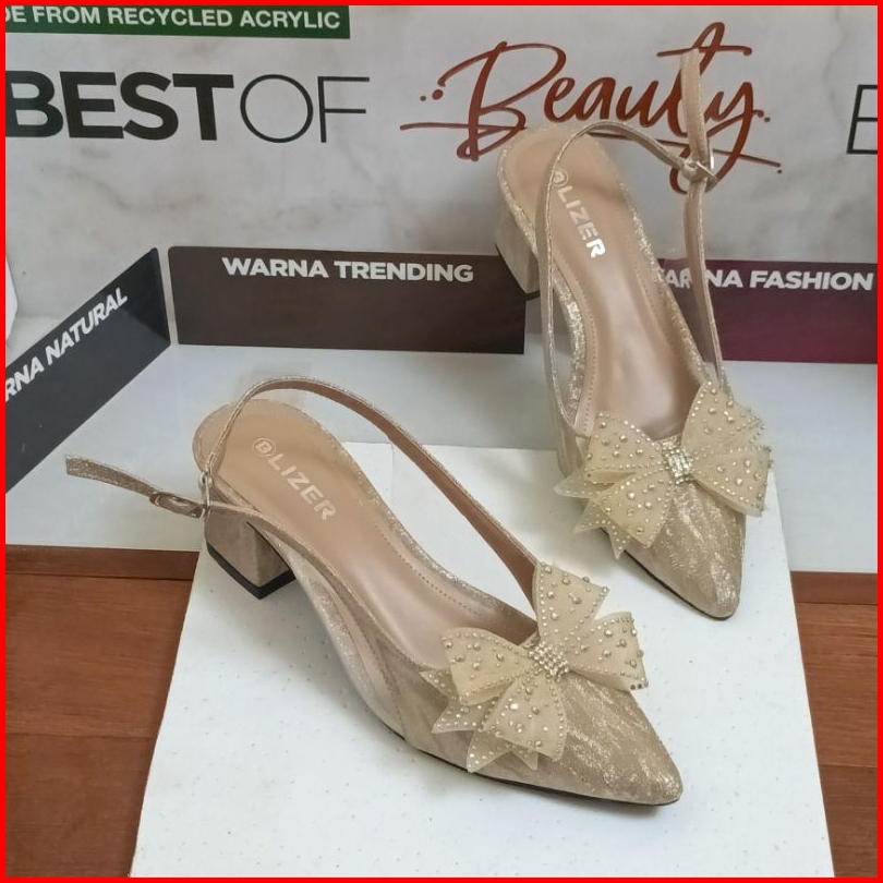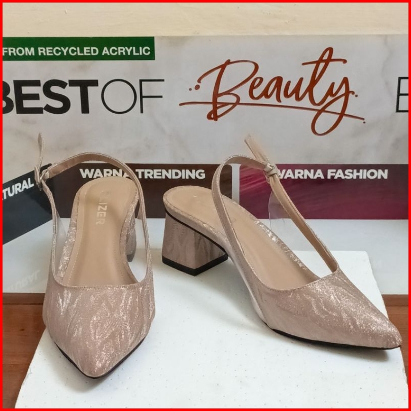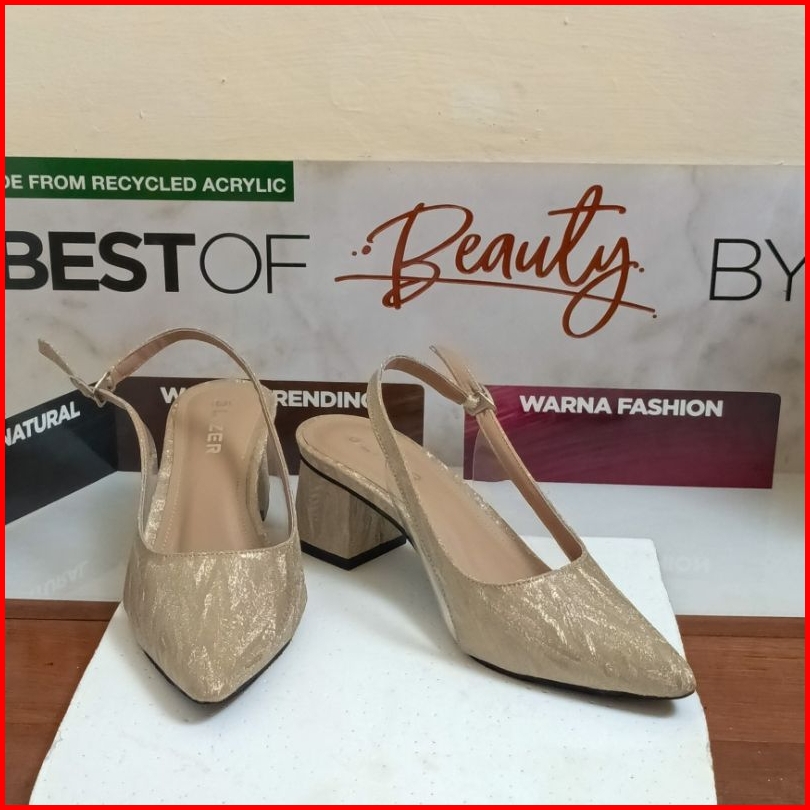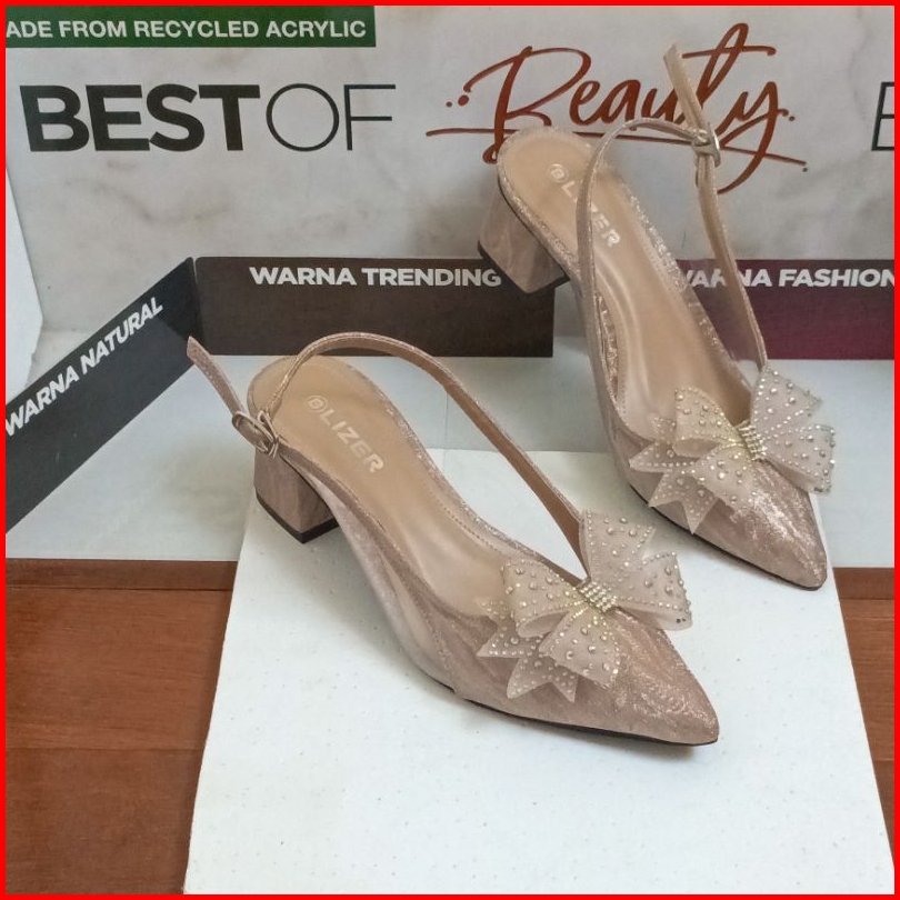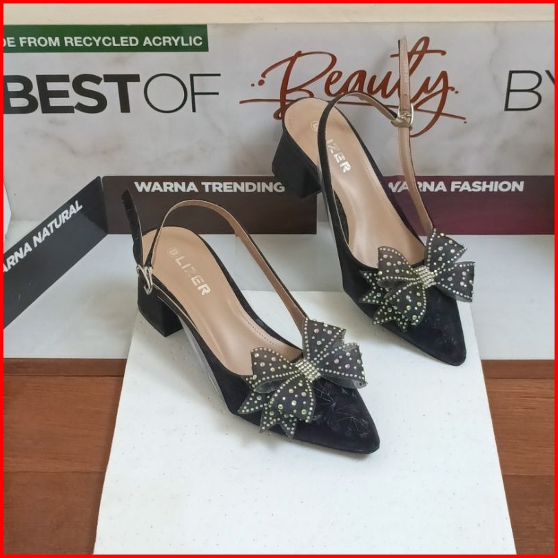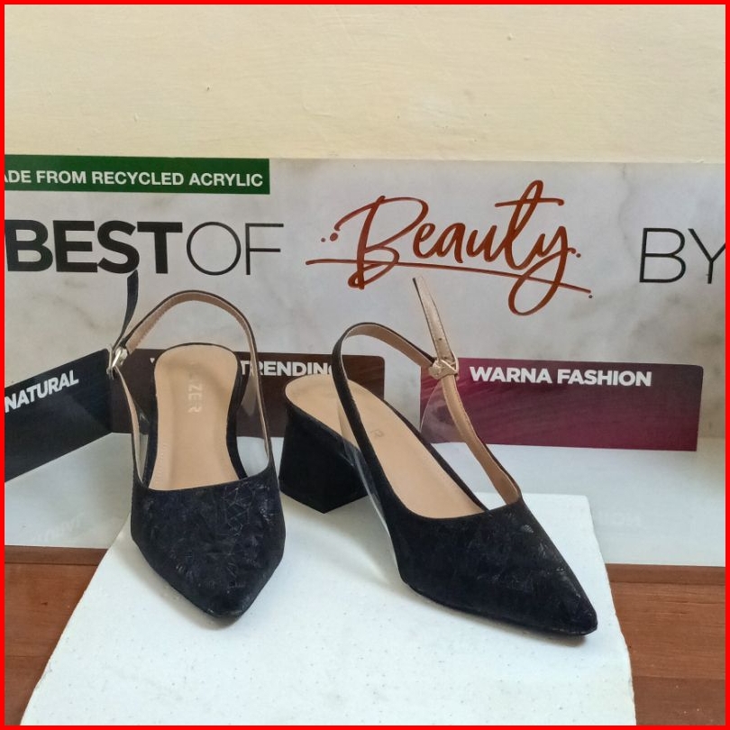 Zer Nisa - Sepatu Heels Wanita Hak Tahu 5cm Hils Elegant Hak Chunky Tali Slingback Pita Model Baru Kekinian - 09114