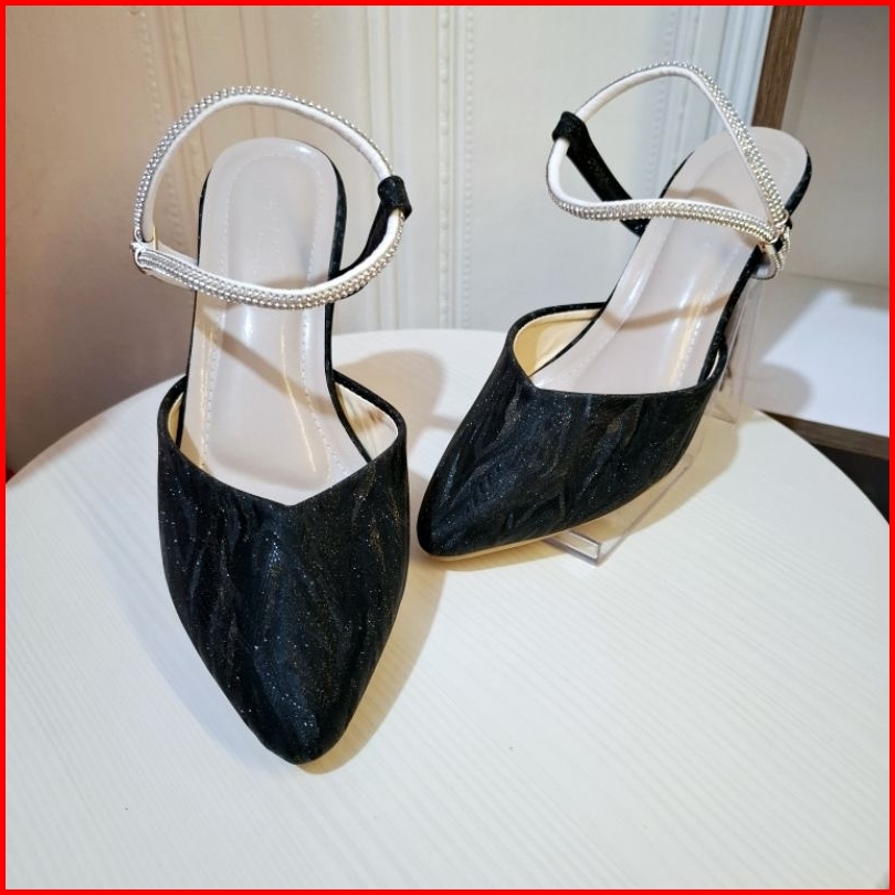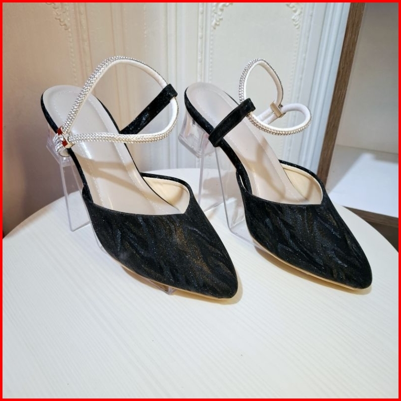 Series Bh 02 Sepatu Pesta Tali Jeli Permata Transparan Sandal Heels Wanita Hak Kaca 5 Cm