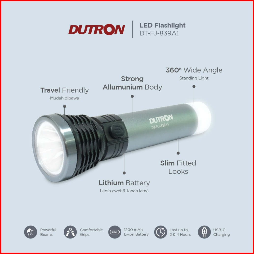 Dutron Senter Led Xenon Alumunium Hitam Slim 5w 4 Led