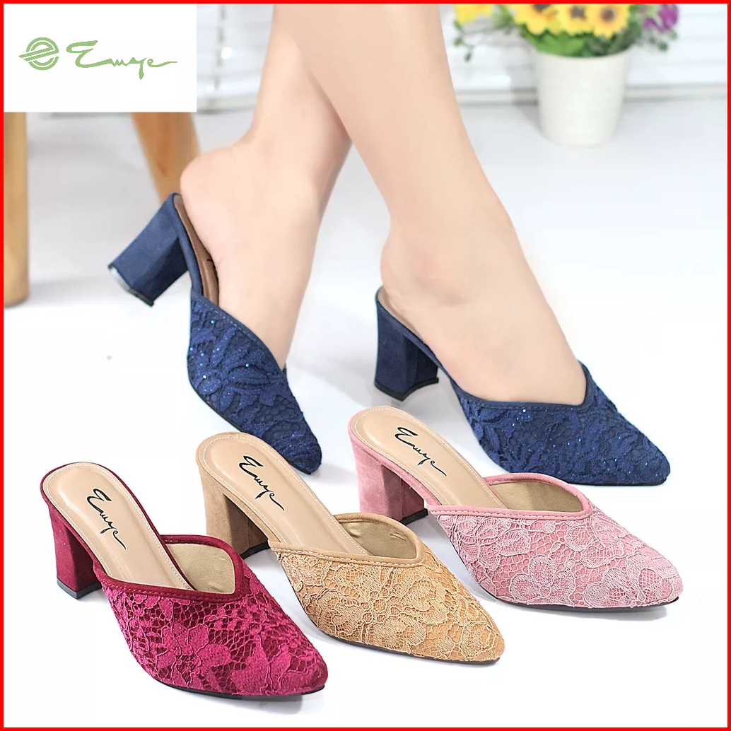 Emye Em01 Sepatu Pesta Bustong Wanita Brukat Glitter Original High Heels Hak Tahu 7cm Mewah