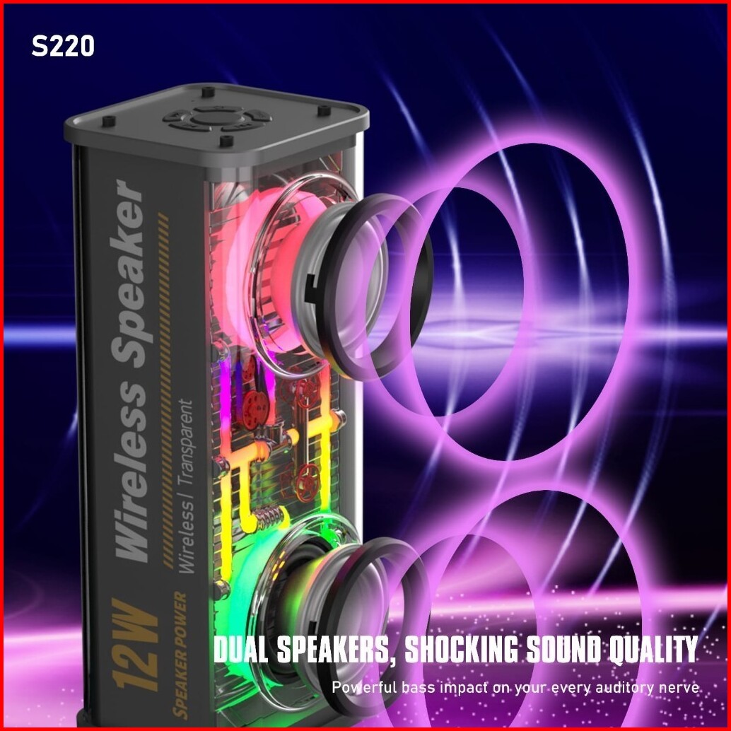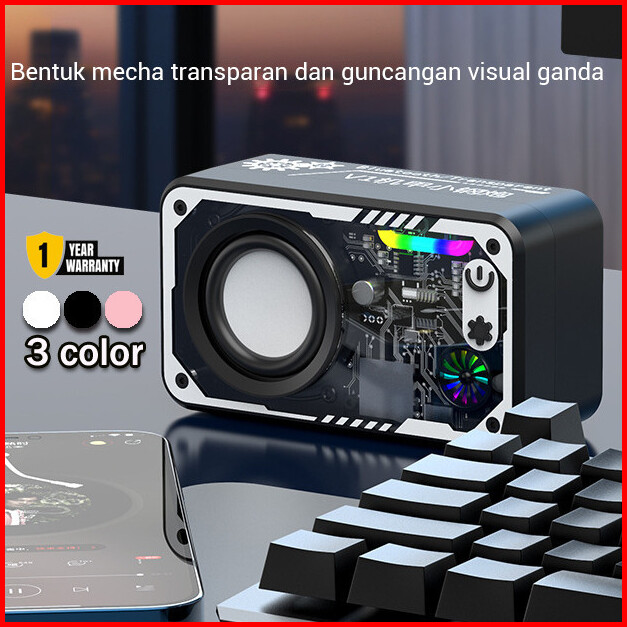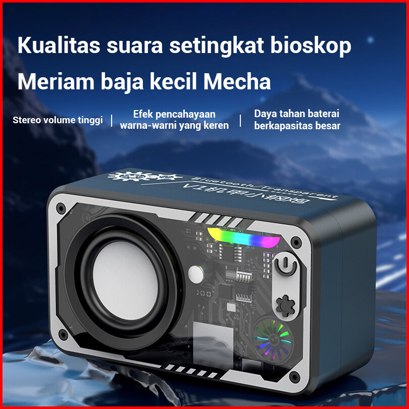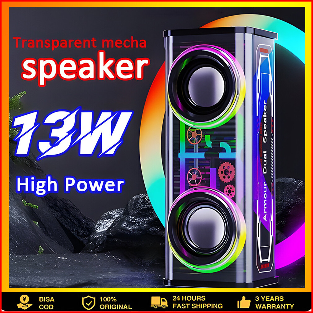 Cyberpunk Speaker Bluetooth V1 V8 Double Subwoofer Music Speaker Rgb Led Light Transparent Mecha Speaker V1 Speaker Blue