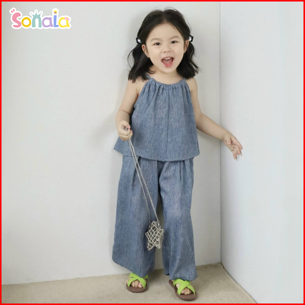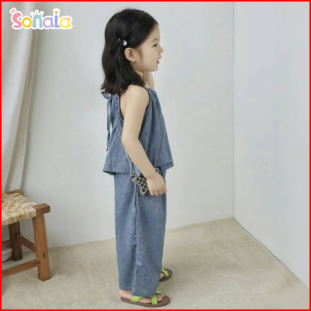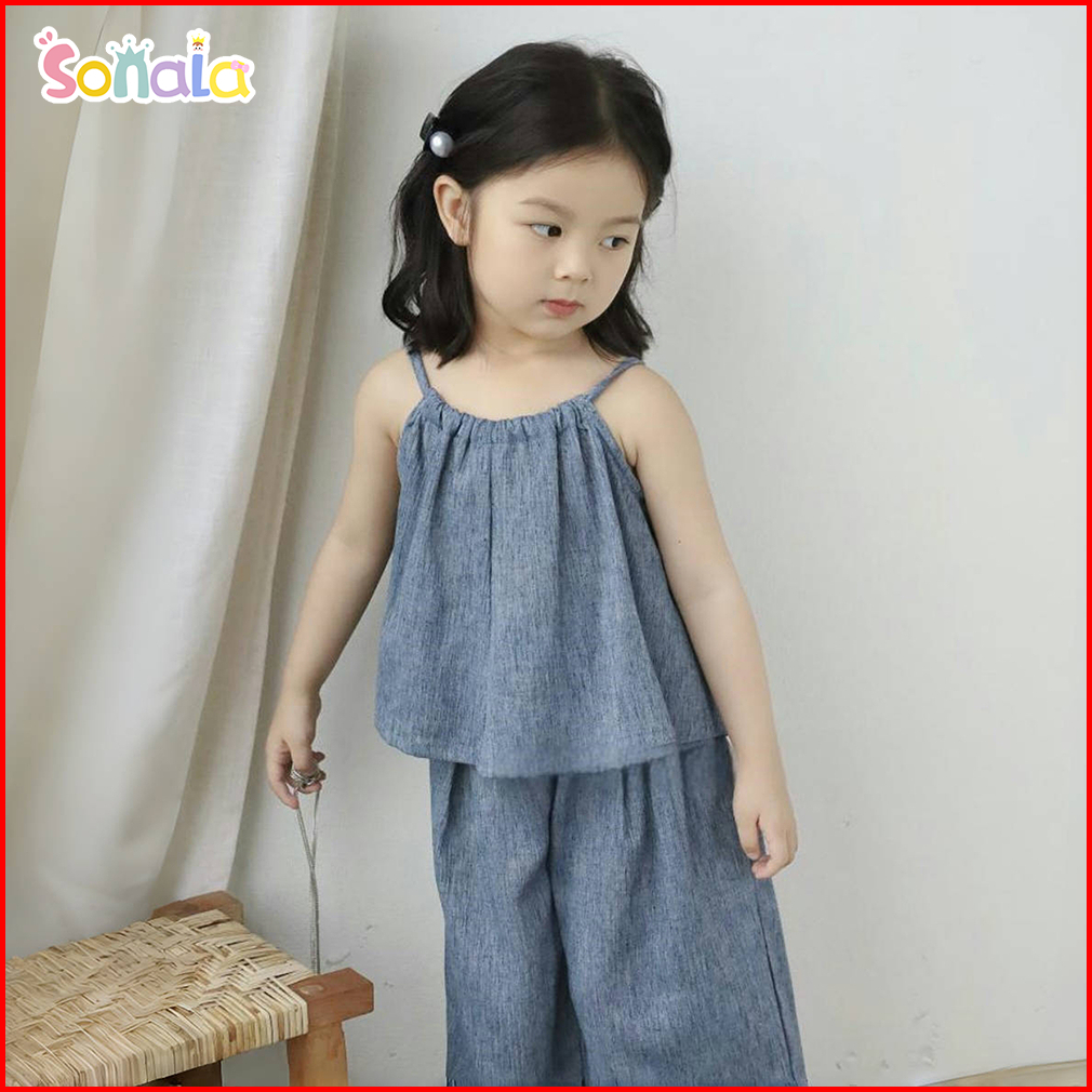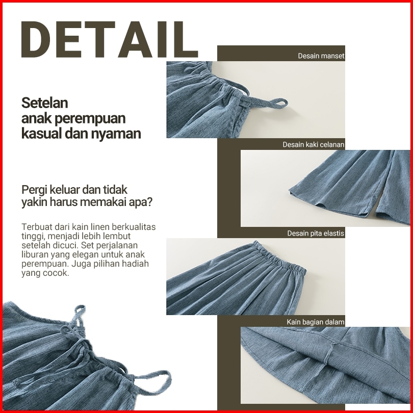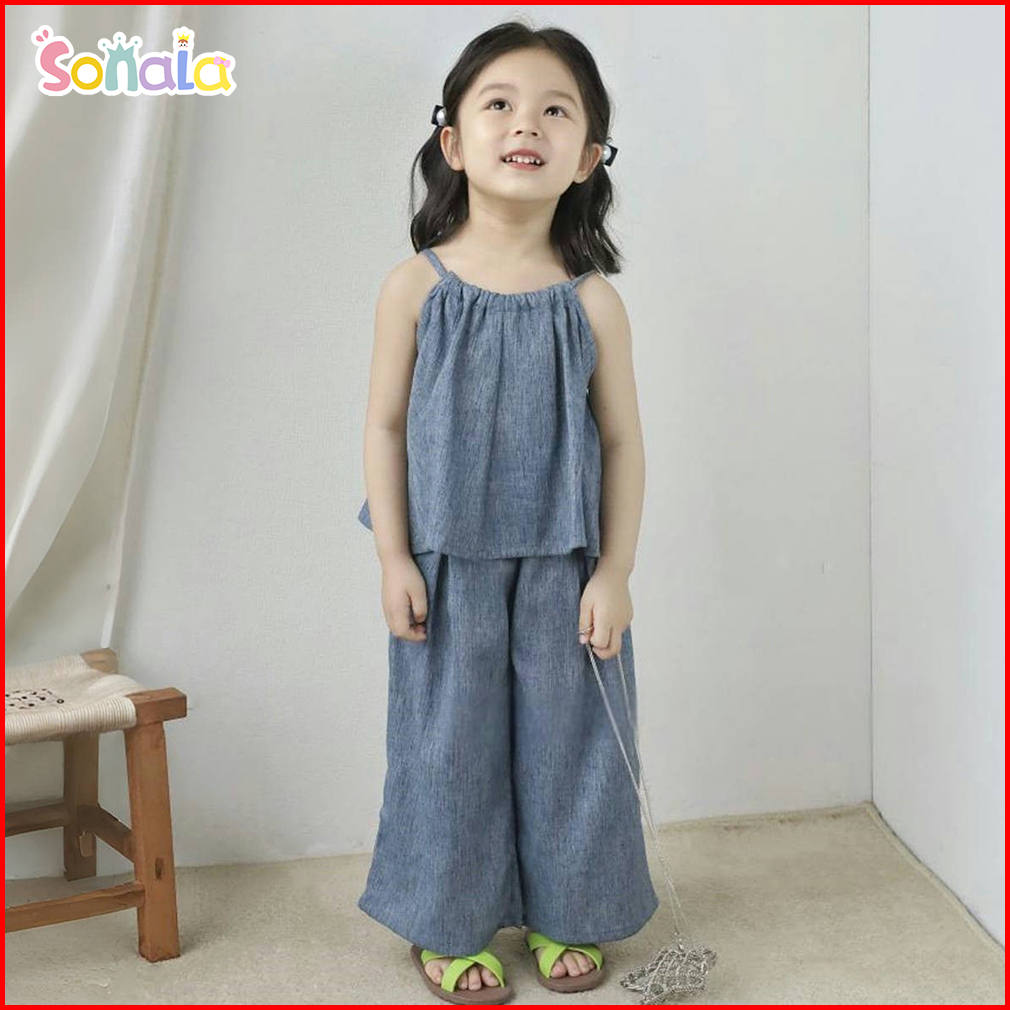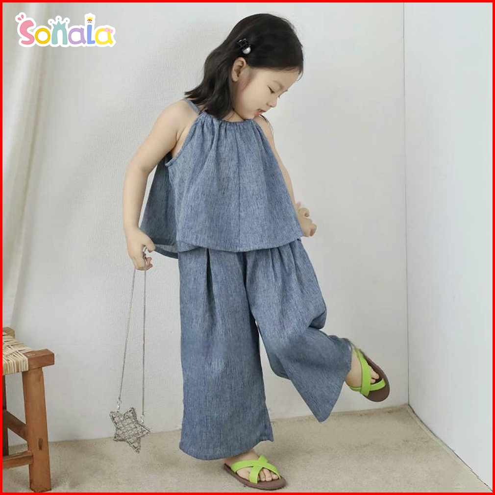 Liburan Gaya Set Setelan Anak Perempuan Ootd Fashion Tank Top Longgar Dengan Bretel Celana Lebar Kaki Setelan Tank Top G