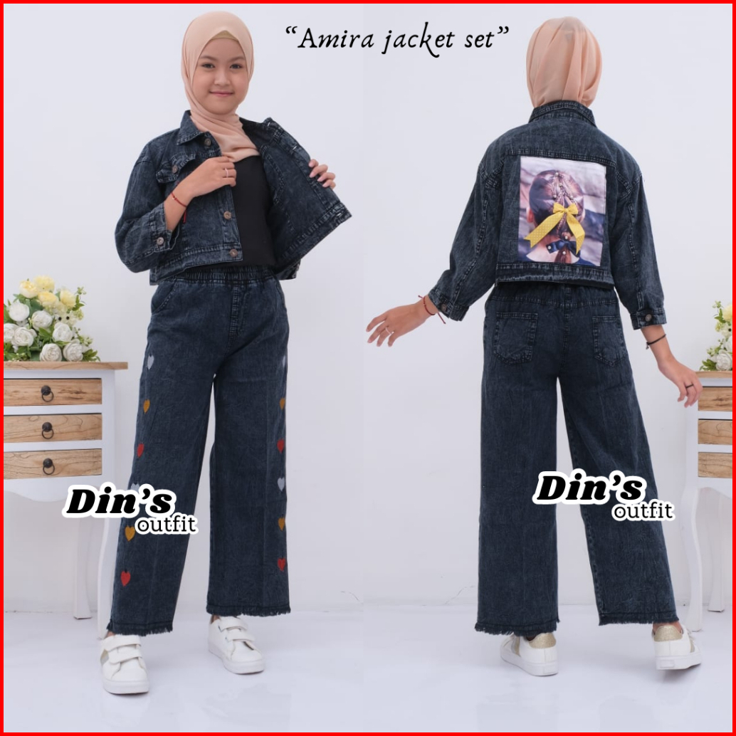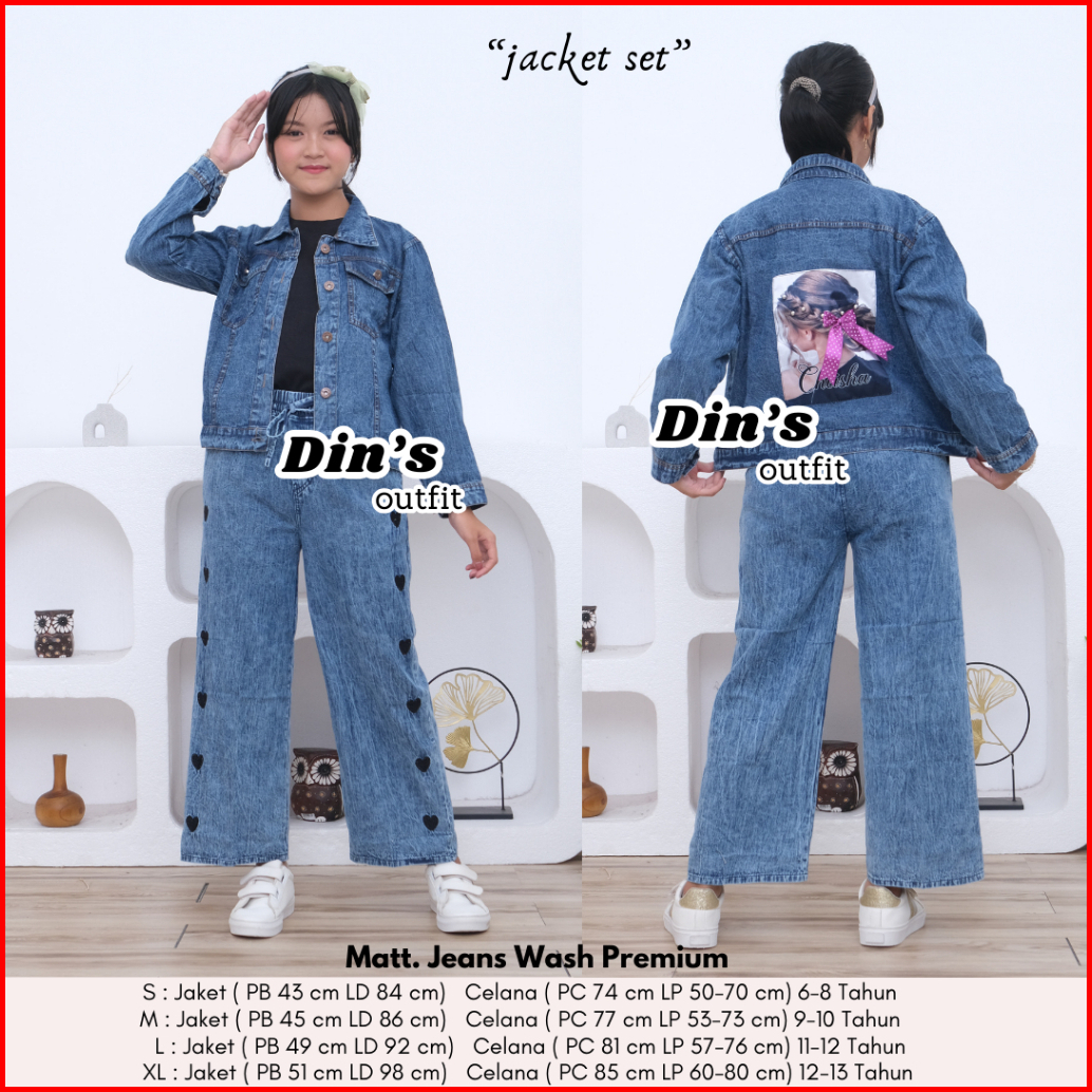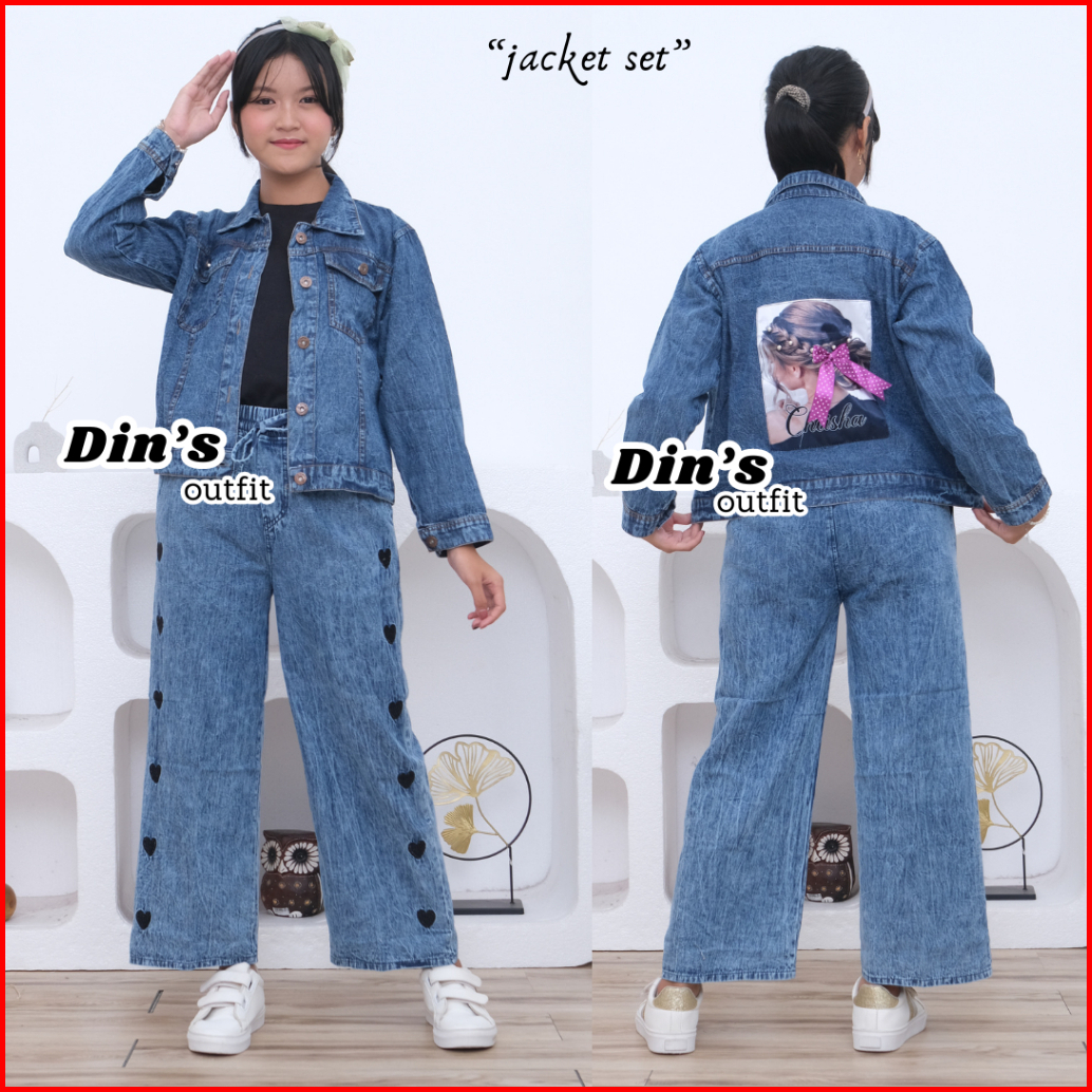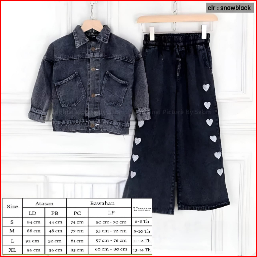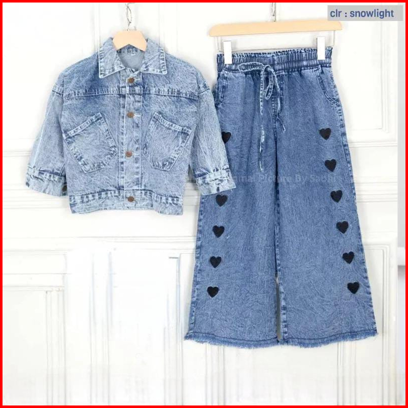 Setelan Jaket Jeans Anak Perempuan 6-14 Tahun Jaket Jeans Anak Mix Celan Love Pants Jeans Set Jaket Jeans Anak Perempuan