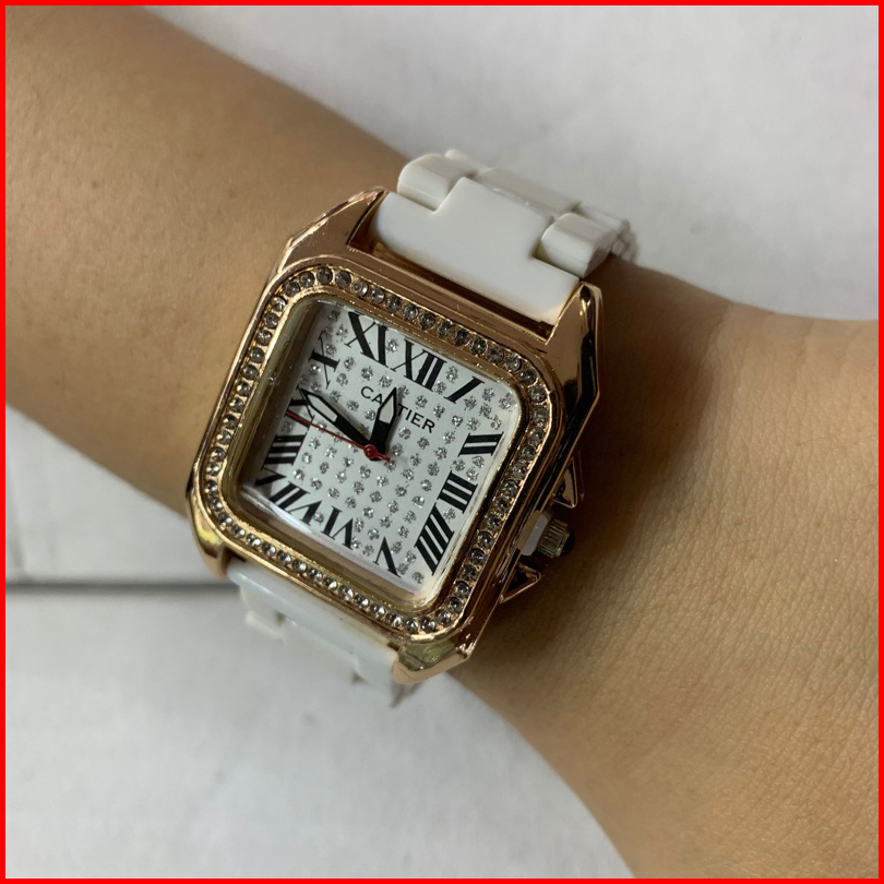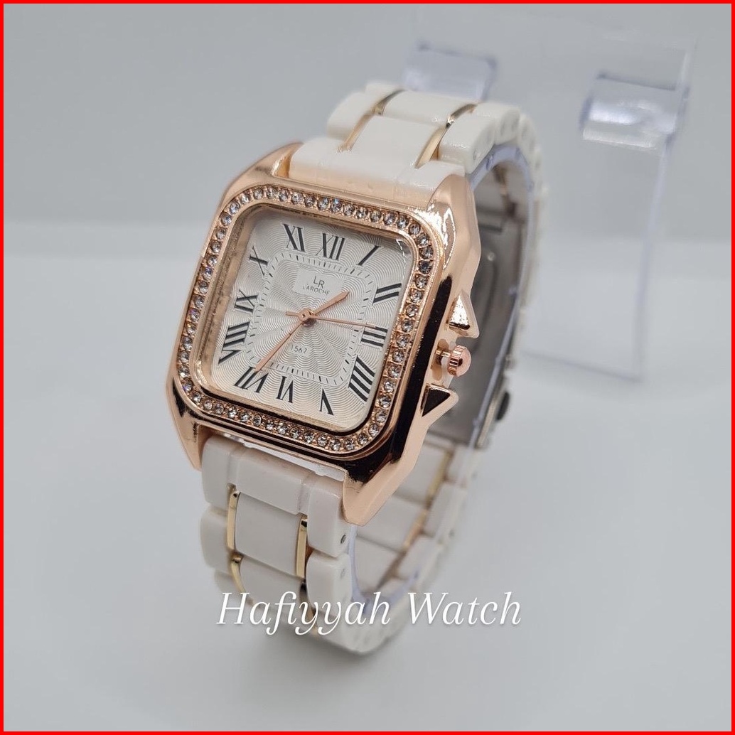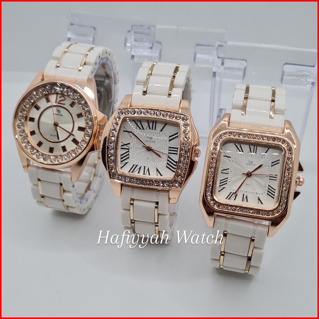 Free Box Jam Tangan Wanita Murah Rantai Mika Putih Kombinasi Jam Import Berkualitas