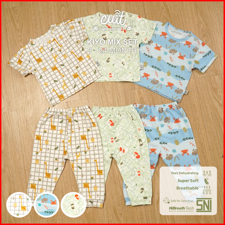 Cuit Setelan Anak Baju Bayi 3 Bulan - 2 Tahun Tangan Pendek Celana Panjang Kiyo Motif Karakter
