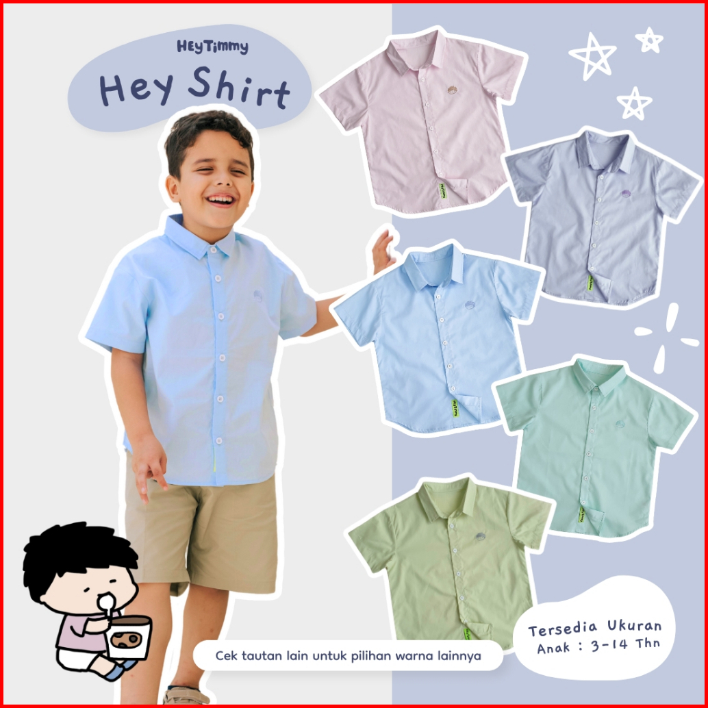 Heytimmy - Hey Kemeja Anak Laki Laki Katun Basic Pastel Soft Biru Hijau Ungu Pink Umur 3 4 5 6 8 10 12 14 Tahun Lengan P