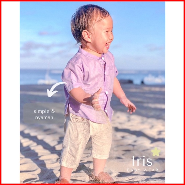 Iris Baby Wear - Atasan Kemeja Bayi Koko Anak Laki Laki Polos Linen Lengan Pendek Bayi Kemko Anak Lilac