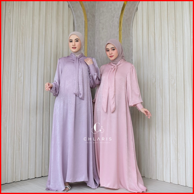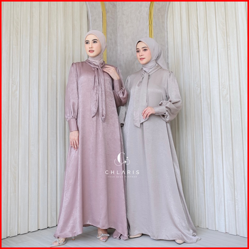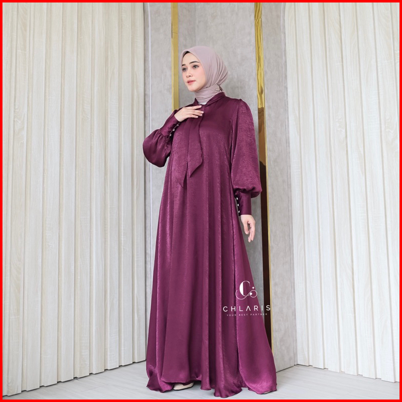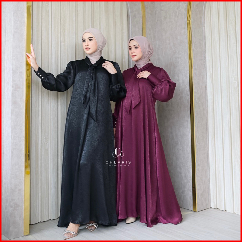 Butikchlaris Fathia Dress Silk Kondangan Bridemaids Dress Shimmer Pesta Gamis Lebaran Elegan Busui