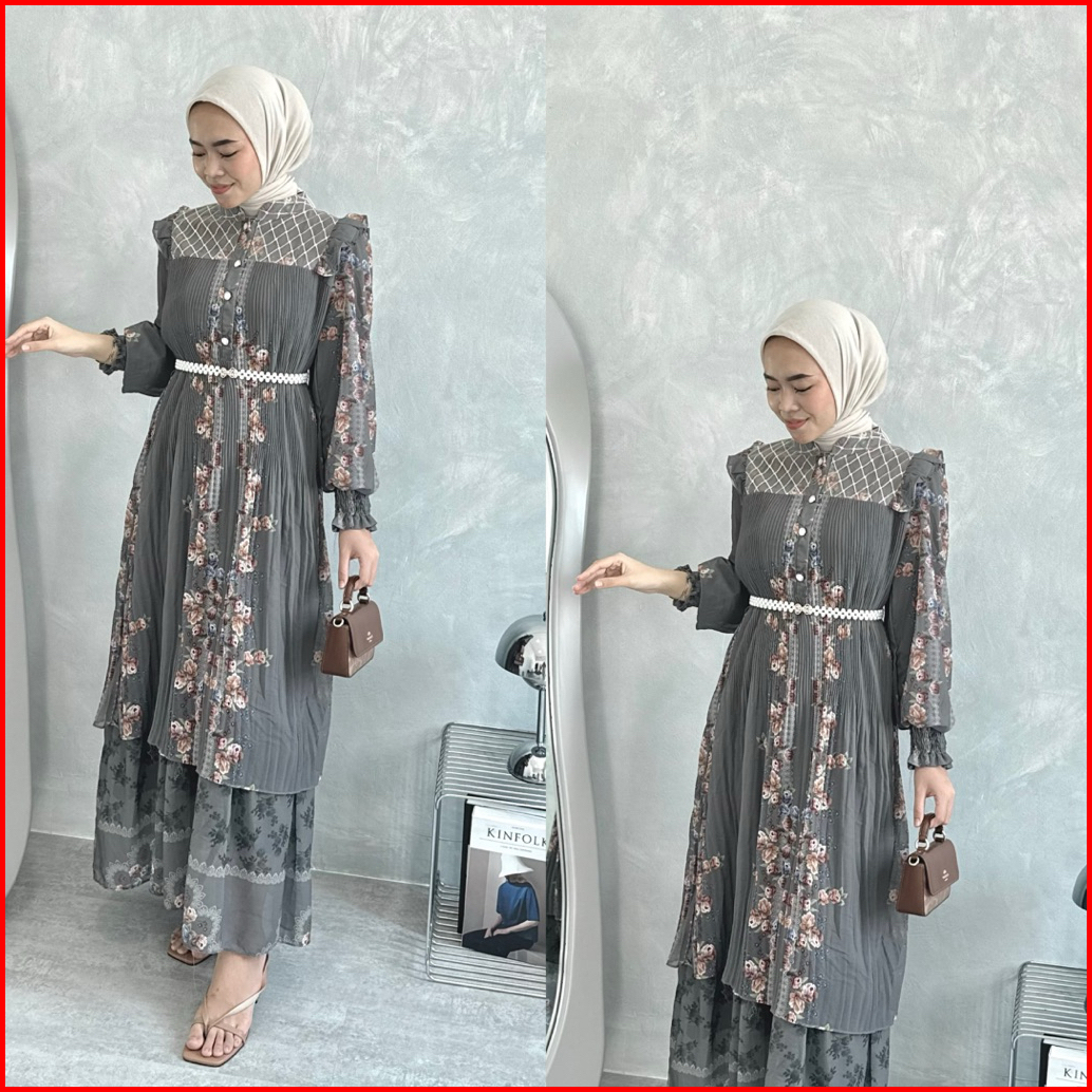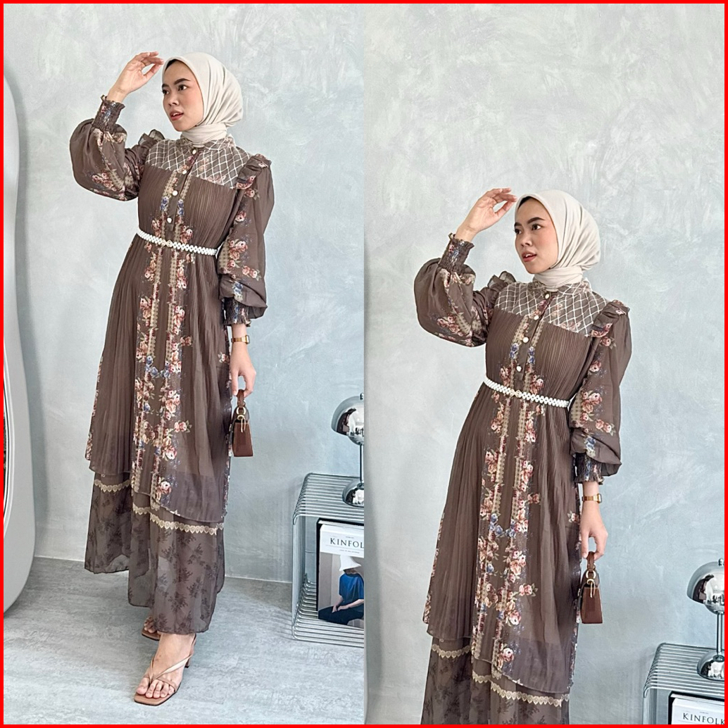 Fatunhijabs - Raya Gamis Pleats Ceruty Batik Belt