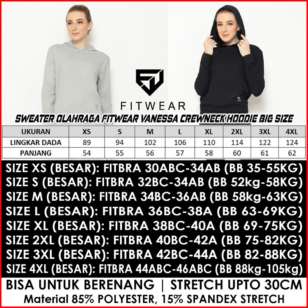 Fitwear - Sweater Olahraga Wanita Vanessa Crewneck Hoodie Big Size - Xs - 4xl