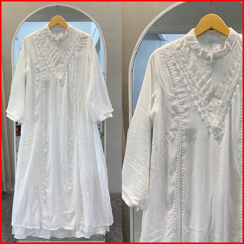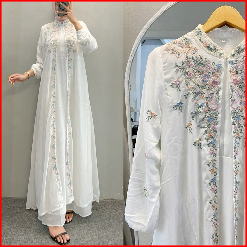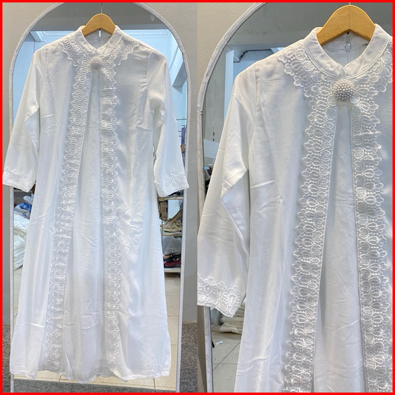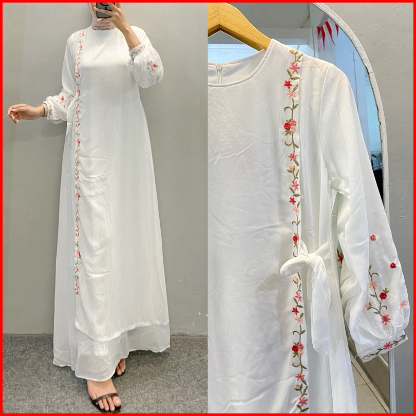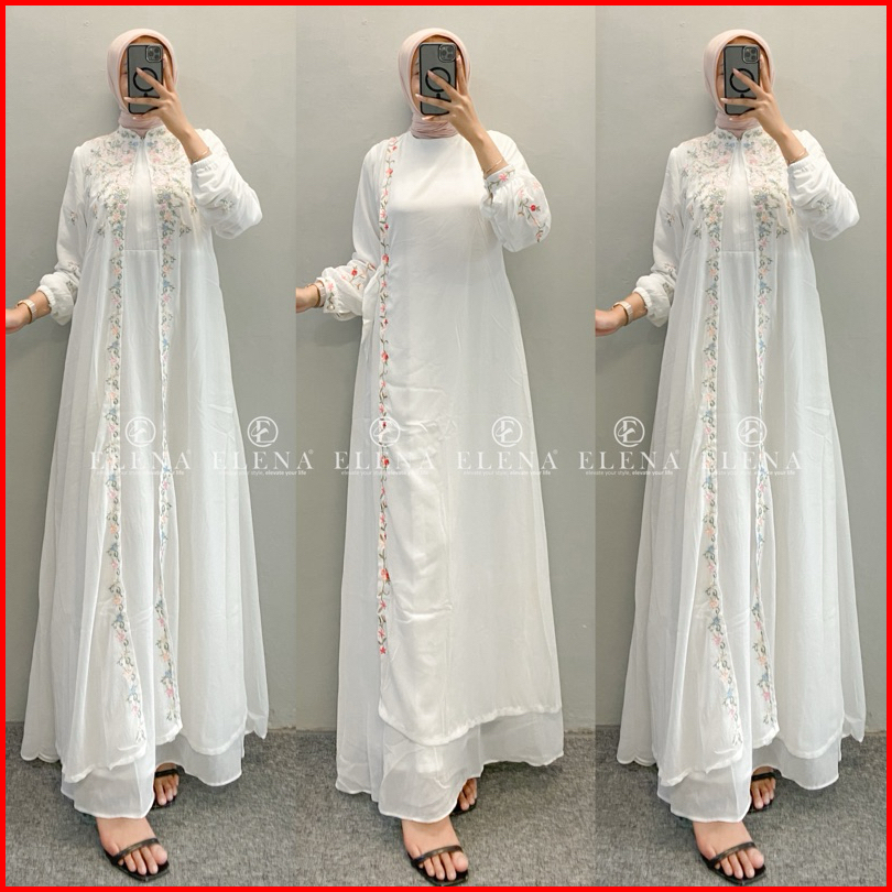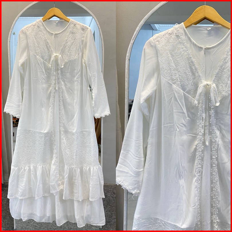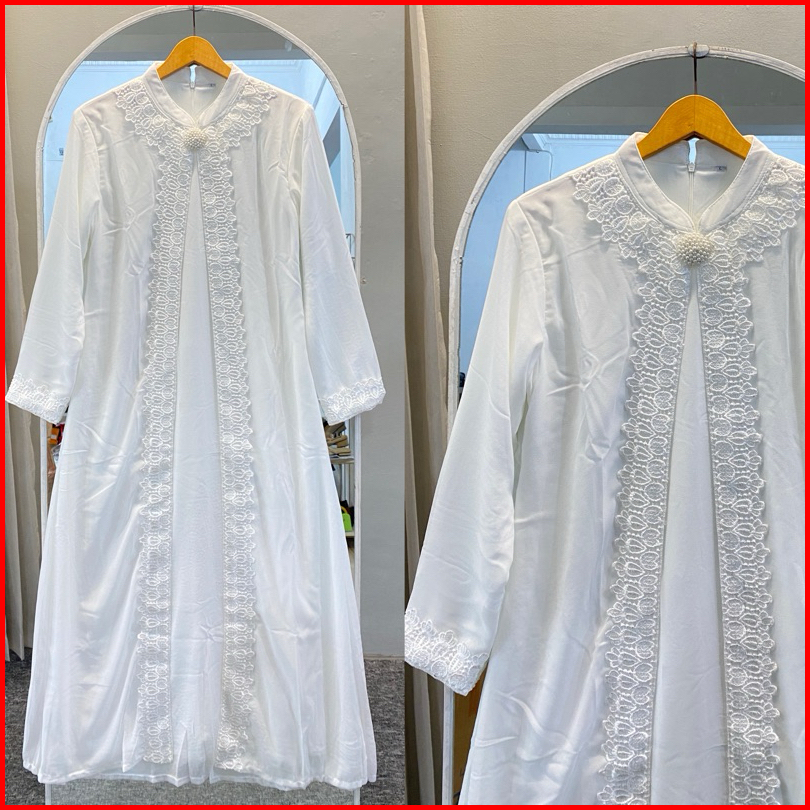Elena- Dress Gamis Putih Baju Lebaran Dress Abaya Anak 2024 Model Baru Elegan Cerutty Kombinasi Renda Abaya Muslim Wanit