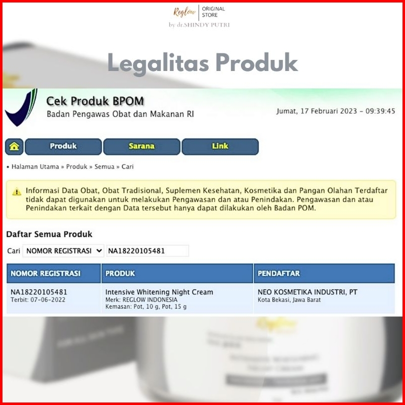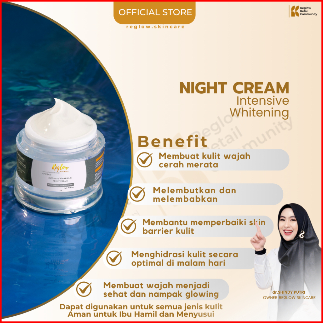 Reglow - Intensive Whitening Night Cream -20g Krim Malam Mengatasi Flek Hitam By Shindy Putri Perawatan Kulit 10 G