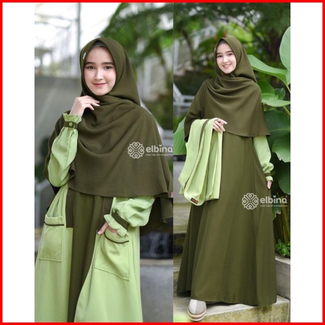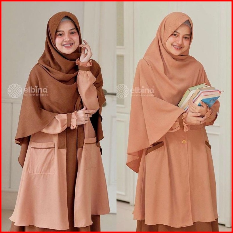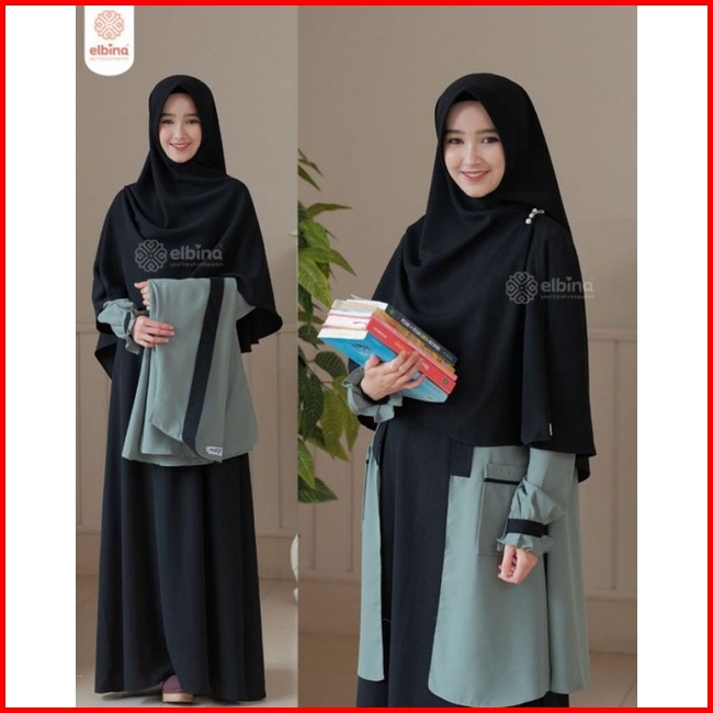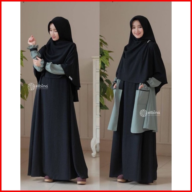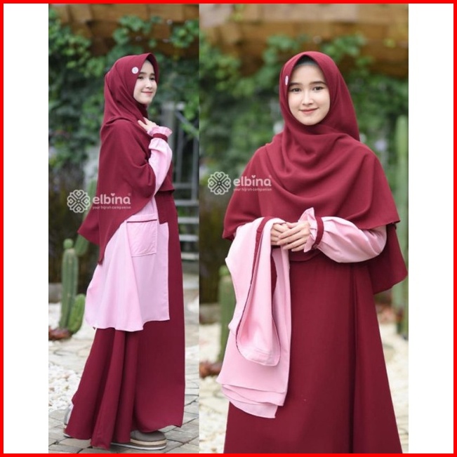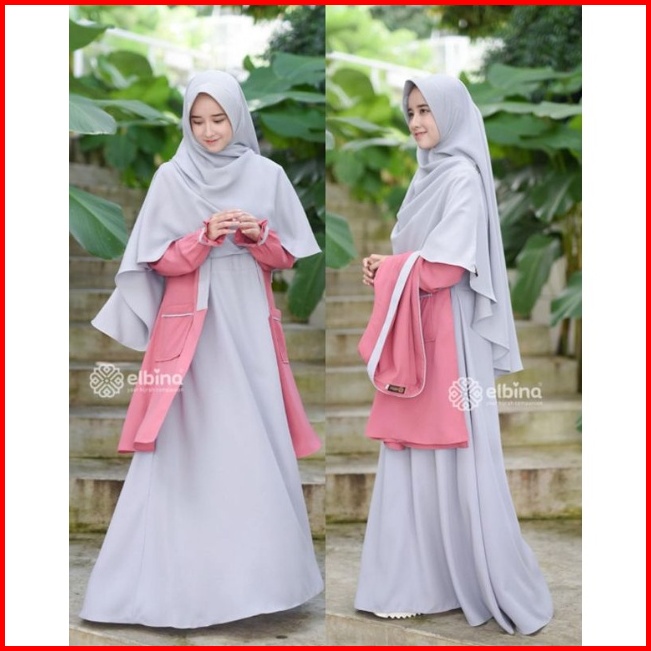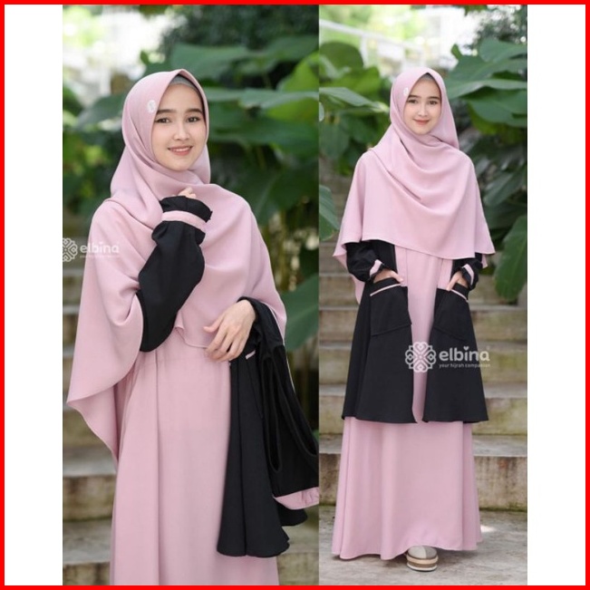 Gamis Elbina Set Gamis Outer Khimar Pasmhina Size S M L Xl Bahan Moscrape Hq Terlaris 2022
