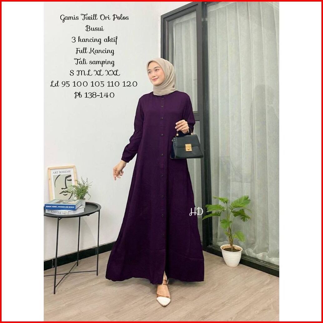 Gamis Wanita Polos Full Kancing Matt Twill Ori Premium Amanda Best Seller Dress Pesta Mewah Simpel