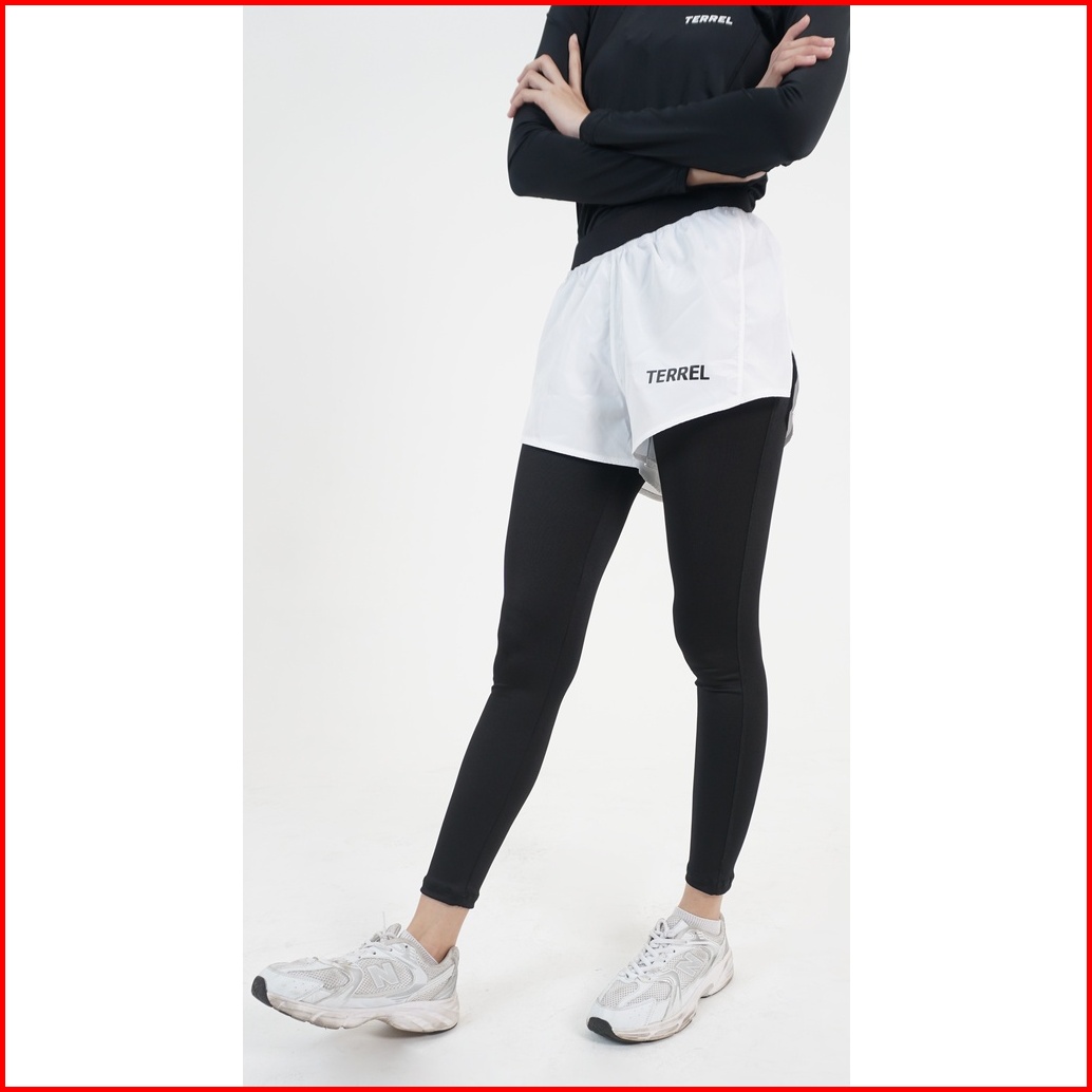 Terrel Sportswear Compression Short Active Celana White Women Olahraga Panjang Gym Running Lari Wanita