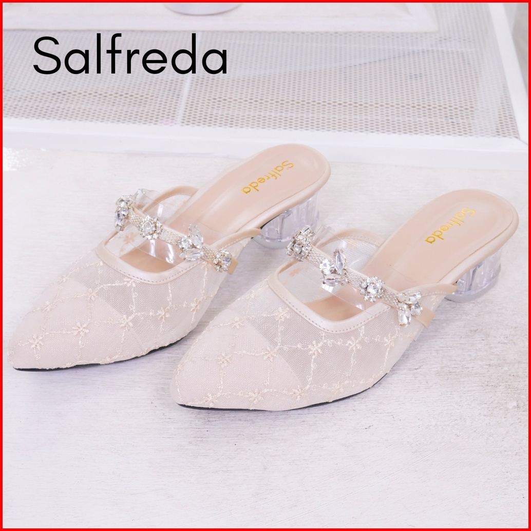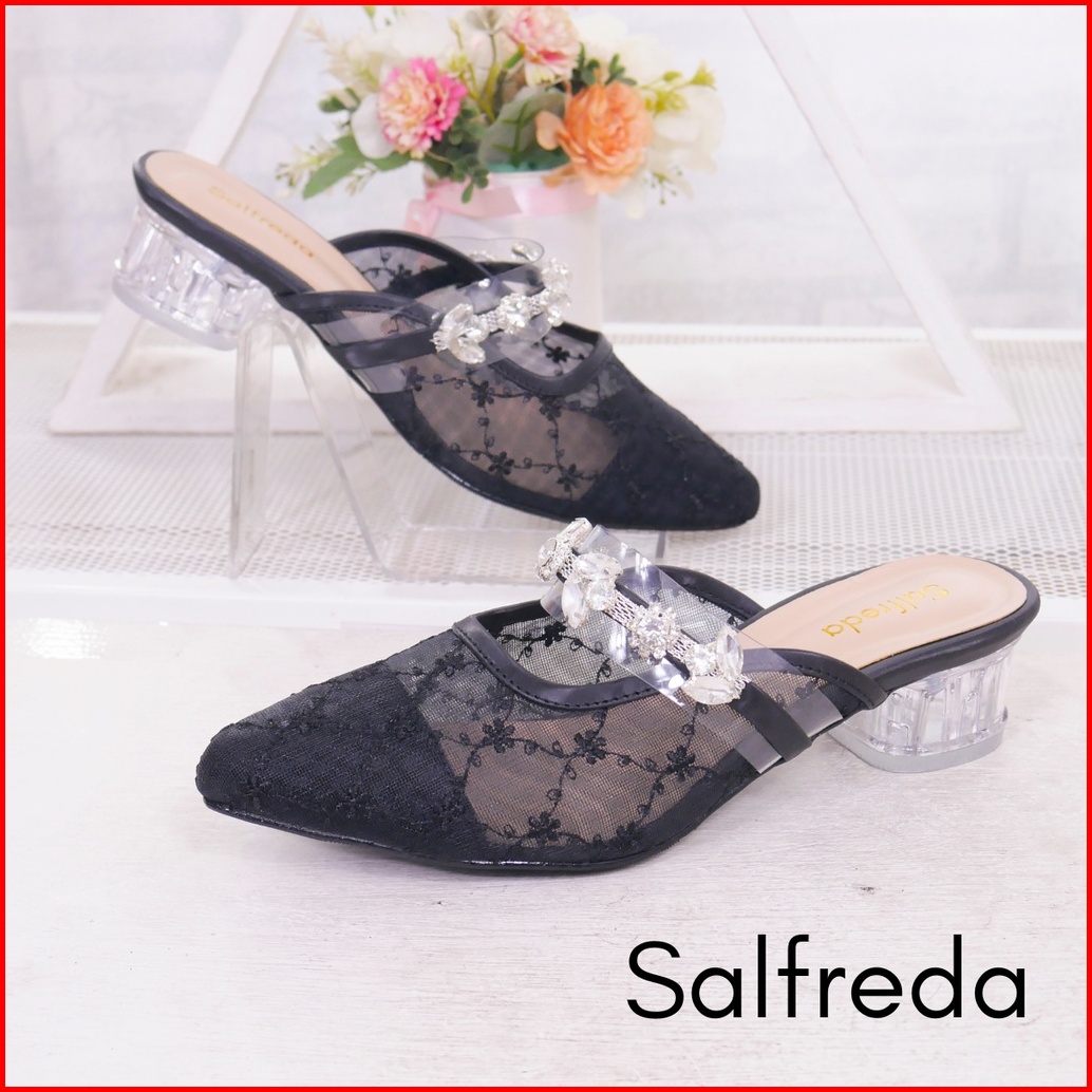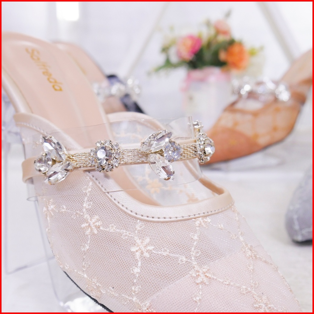 Sepatu Sandal Pesta Wanita Kondangan Mewah Import Brukat Heels 3 Cm Kaca Dv70001 Kliksista Eden