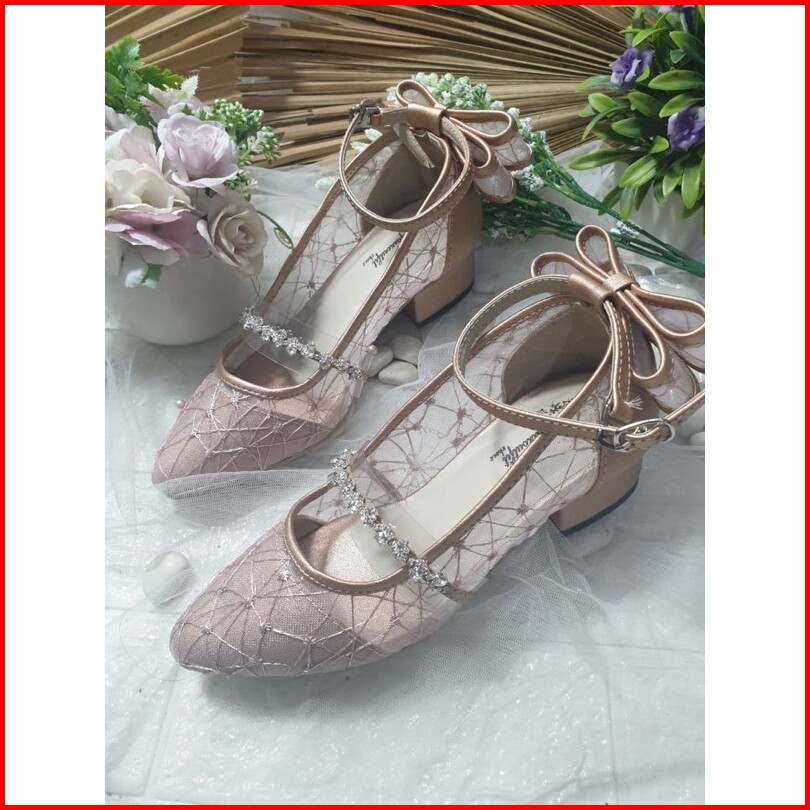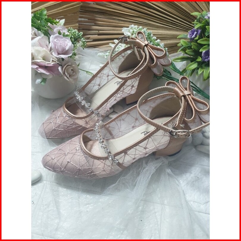 Sepatu Pesta Wisuda Vilea Rosegold Diamont Tali Pita 3cm Bahan
