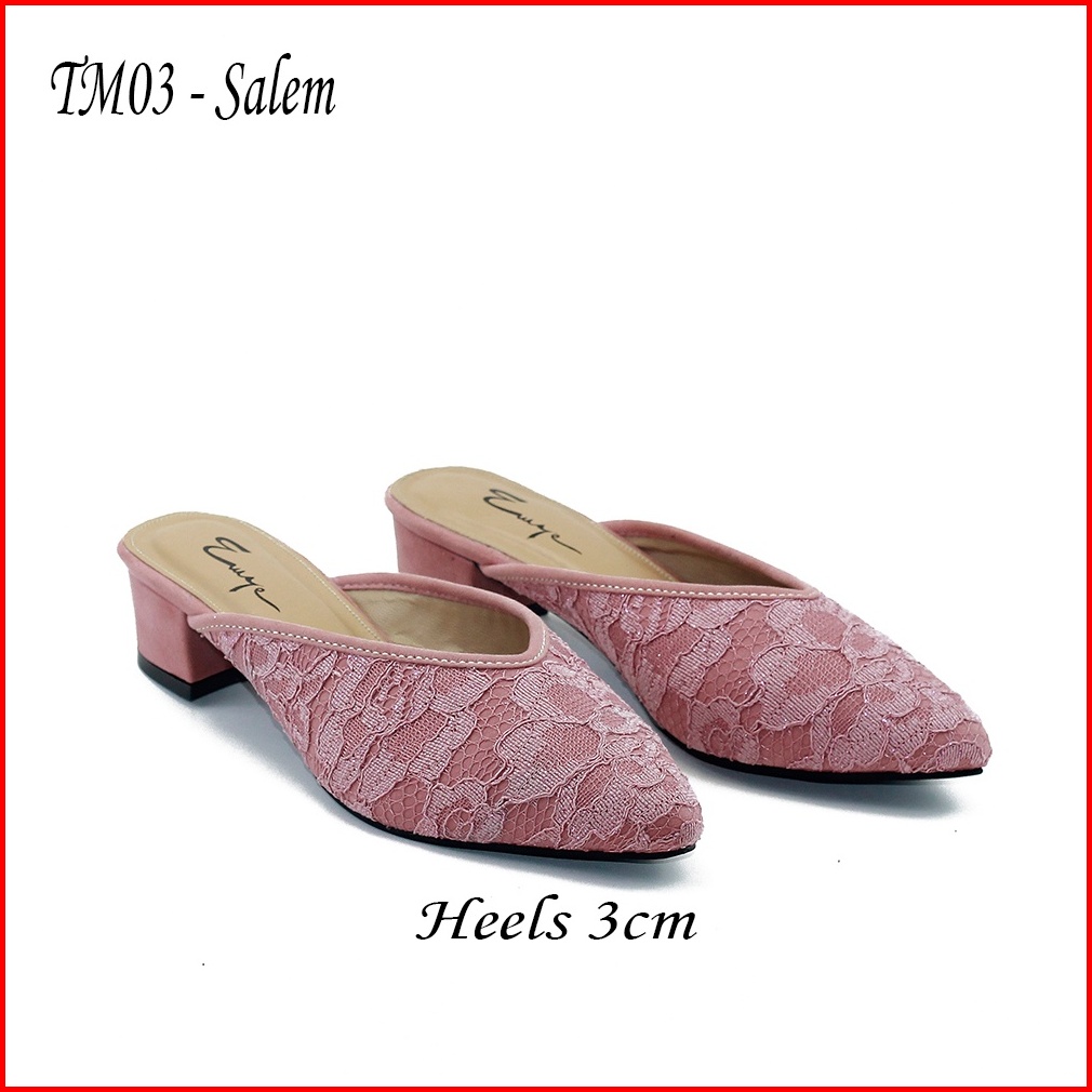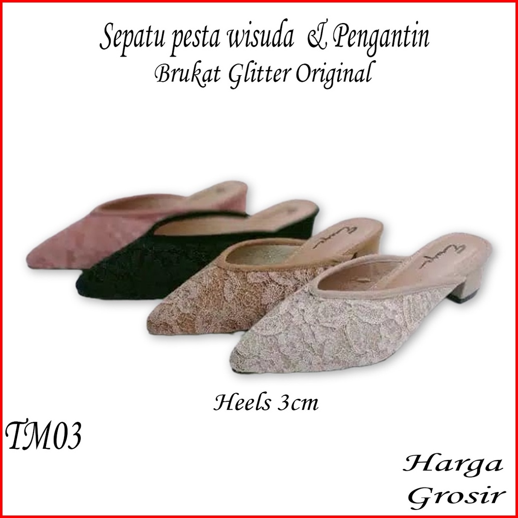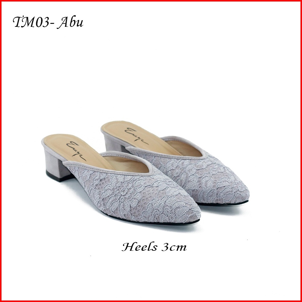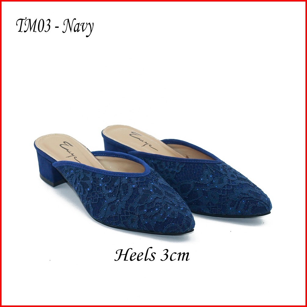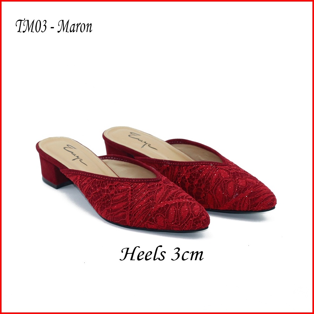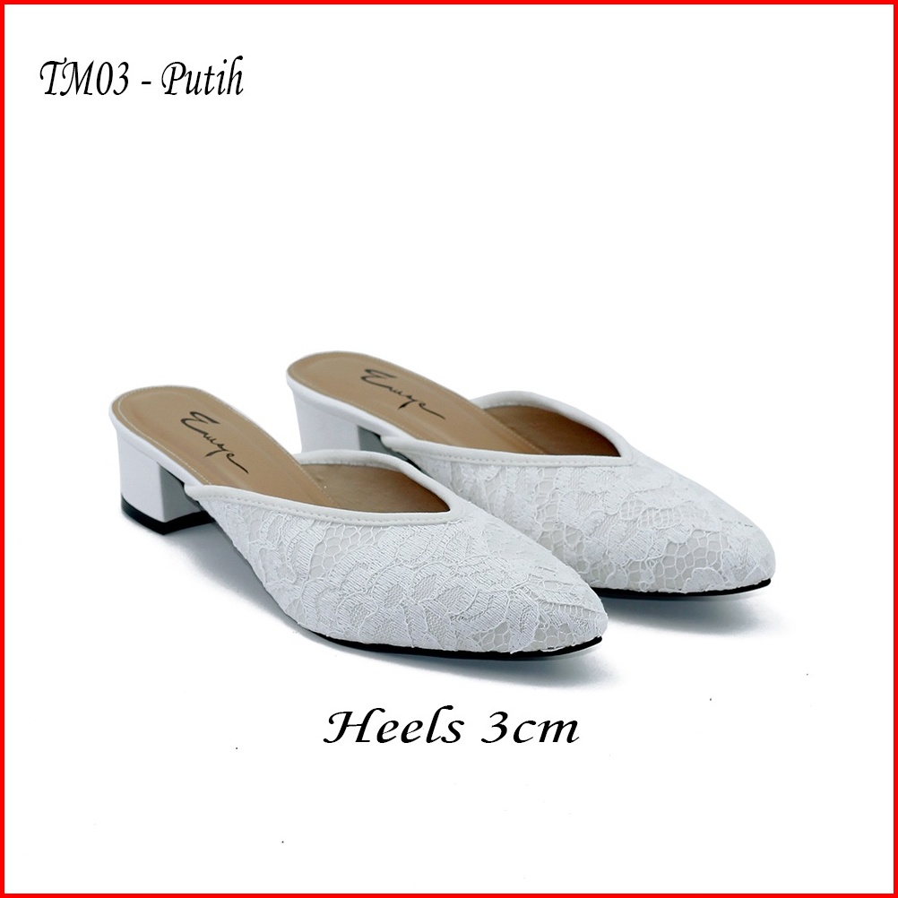 Emye - Sepatu Sandal Pesta Pengantin Brukat 3cm Wanita Mules Wedding Kondangan Kekinian Elegan Terbaru