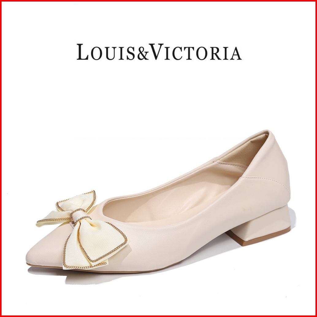 Louis Victoria Heels Wanita Kantoran Sepatu Pesta Hangout Heels Cewek Trendy Motif Bunga Beige Hitam Lwl207