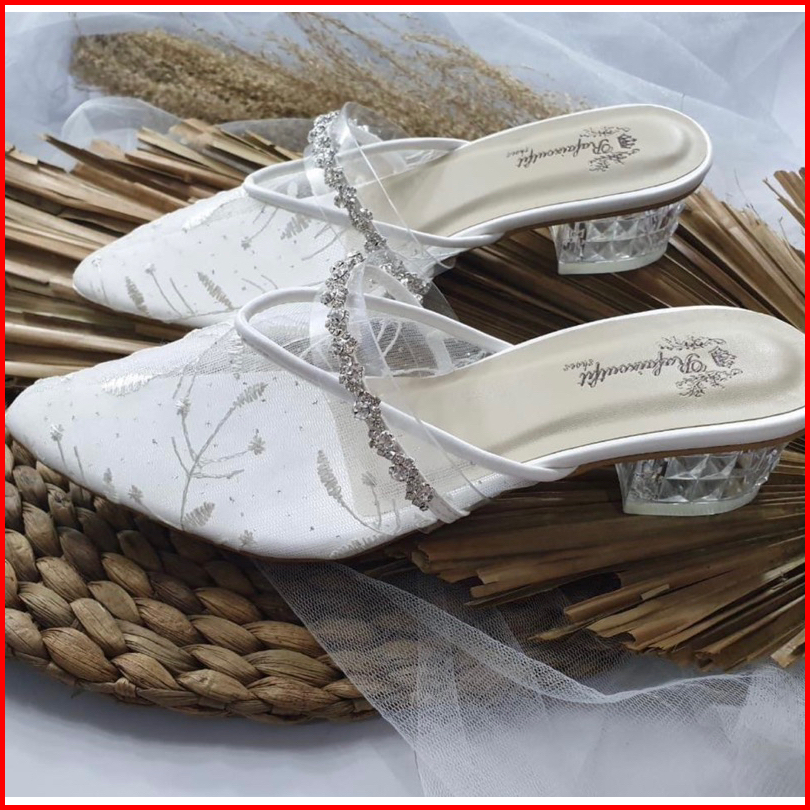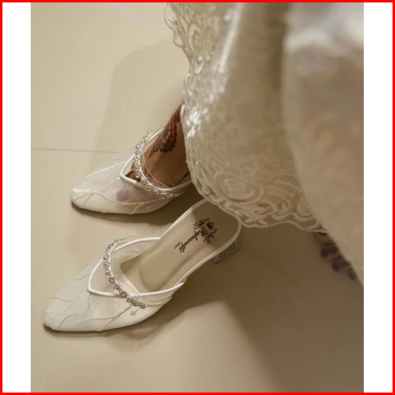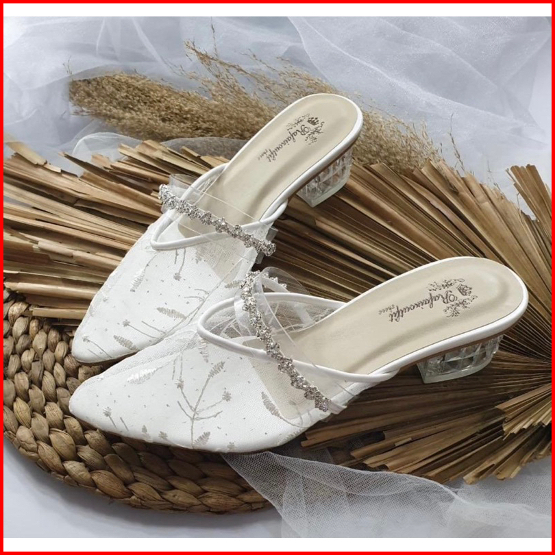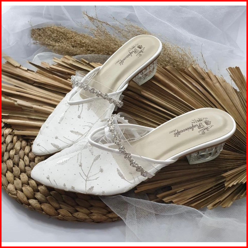 Sepatu Pesta Azwa Putih Heels 3cm Renda Elegan