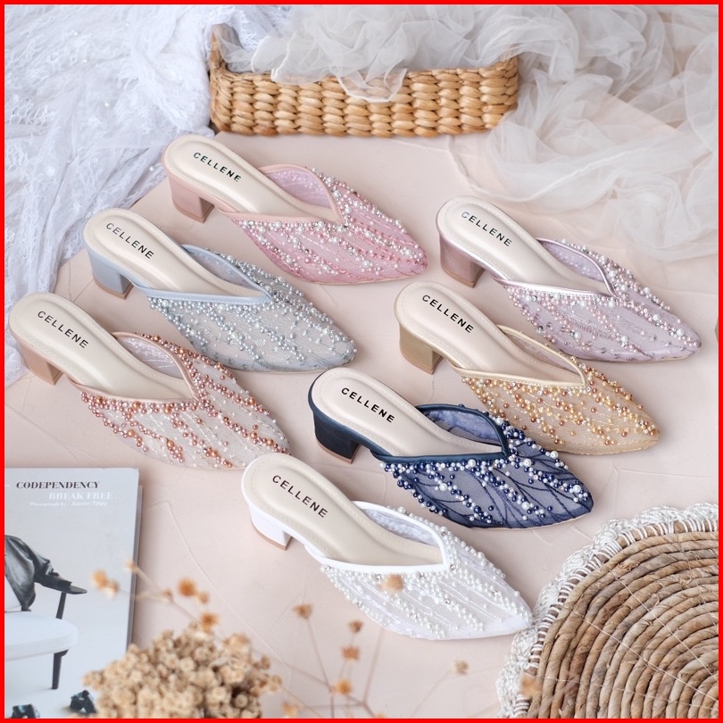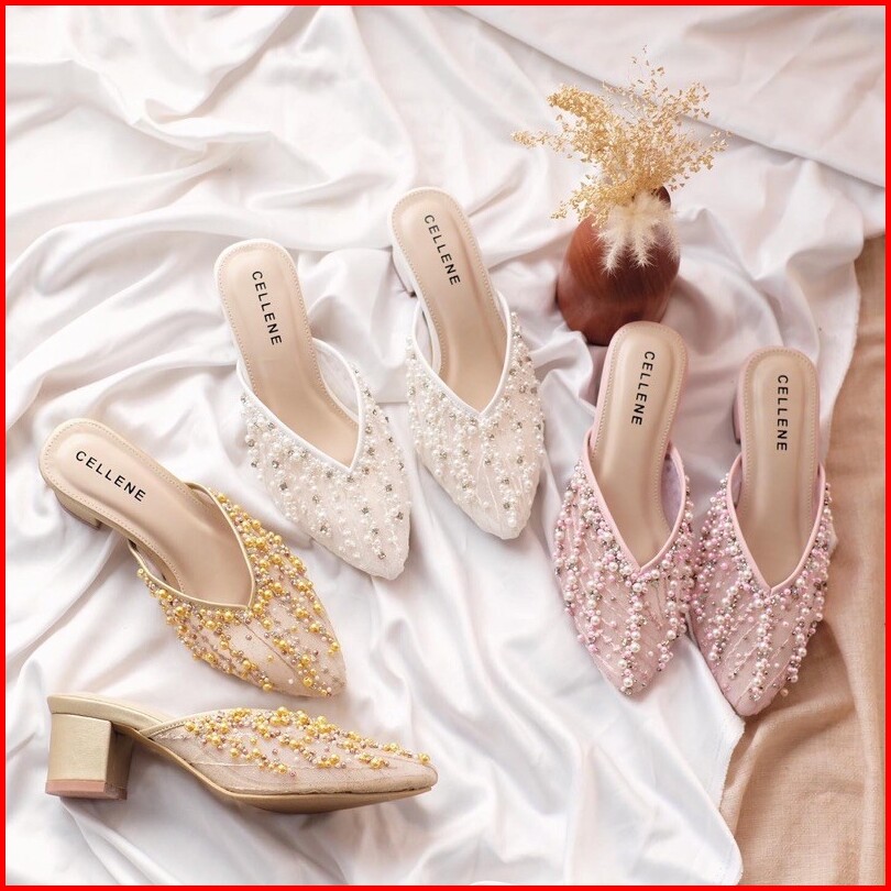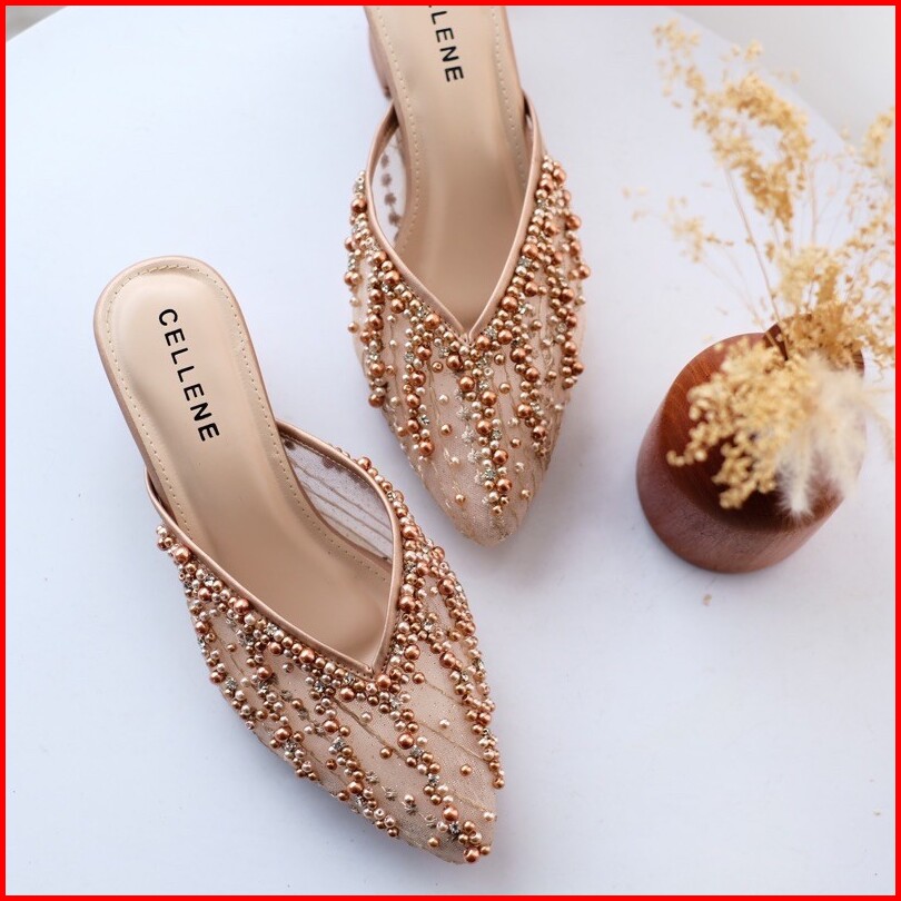 Cellene Irish Beads Wedding Shoes Heels 5cm Sepatu Wanita Pesta Pernikahan Heels Pengantin Berpayet