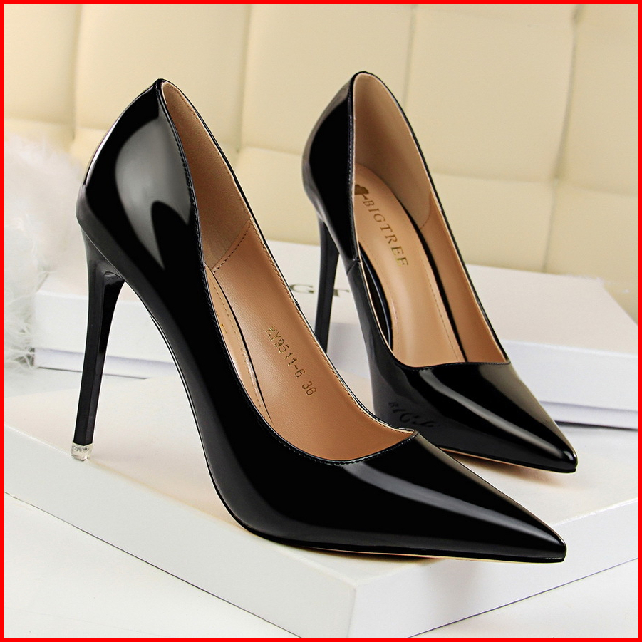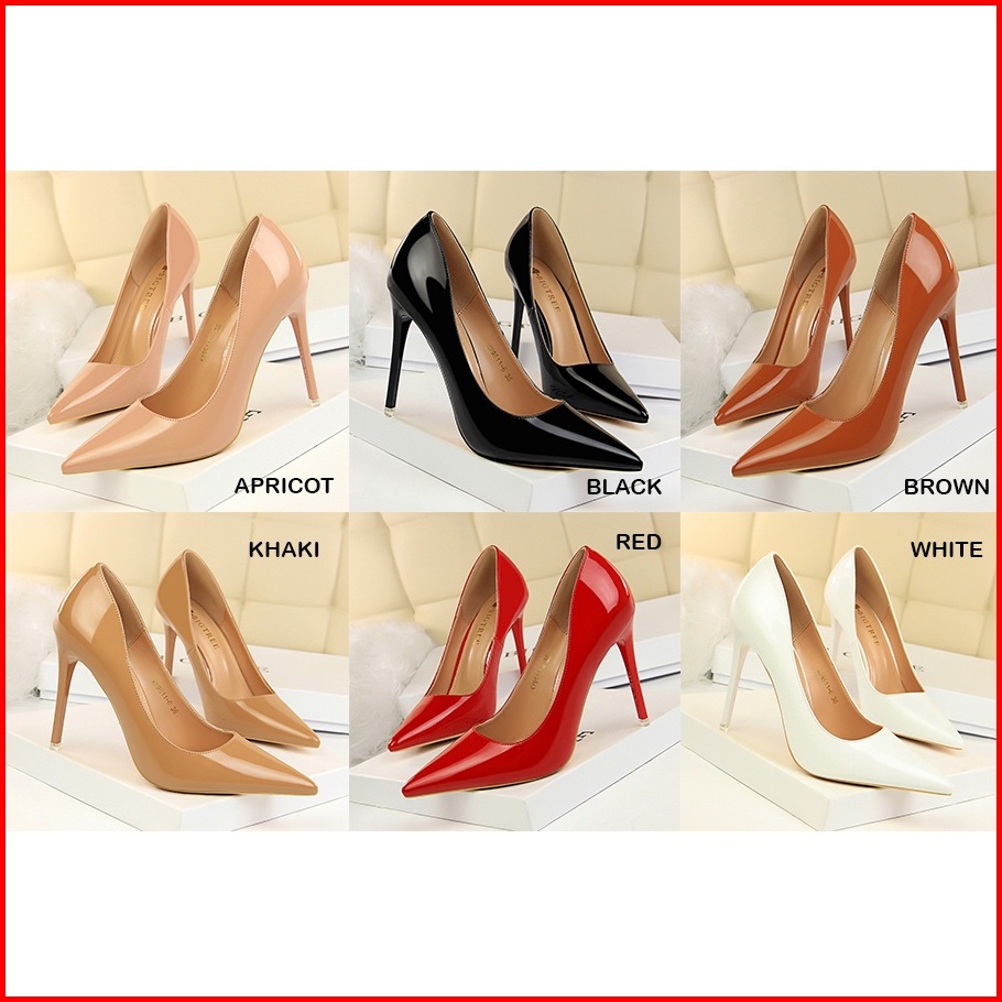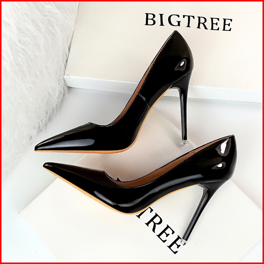 Leona Black 34-43 10.5cm Dan 7.5cm 23 Heels Glossy Polos- Woman Heels Big Tree Swi Sepatuwanitaimport - Sileto - Elegan