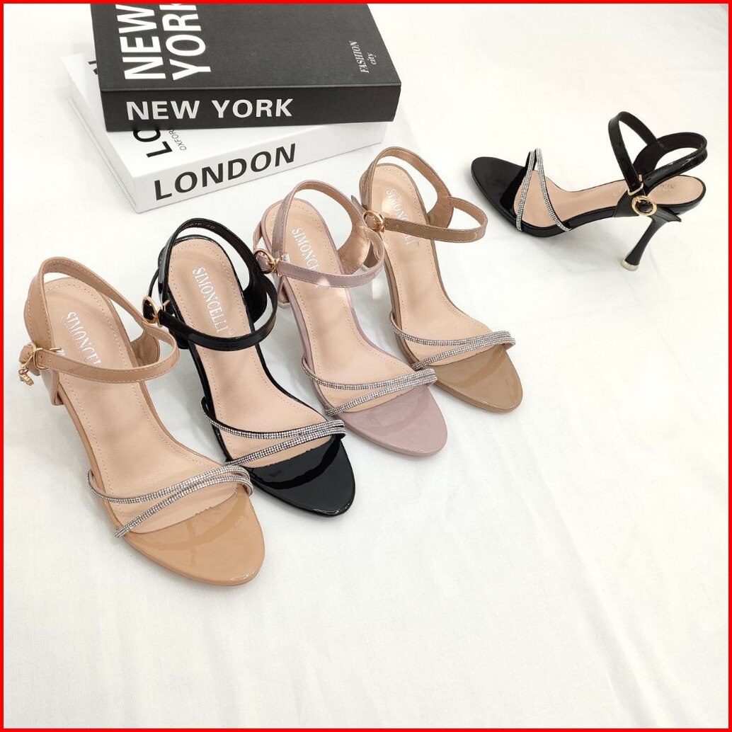 Simoncelli Sepatu Wanita Heels Tali Belakang 9 Cm Mutiara Sepatu Wanita Heels Hitam High Heels Heels Pesta Wedding Shoes